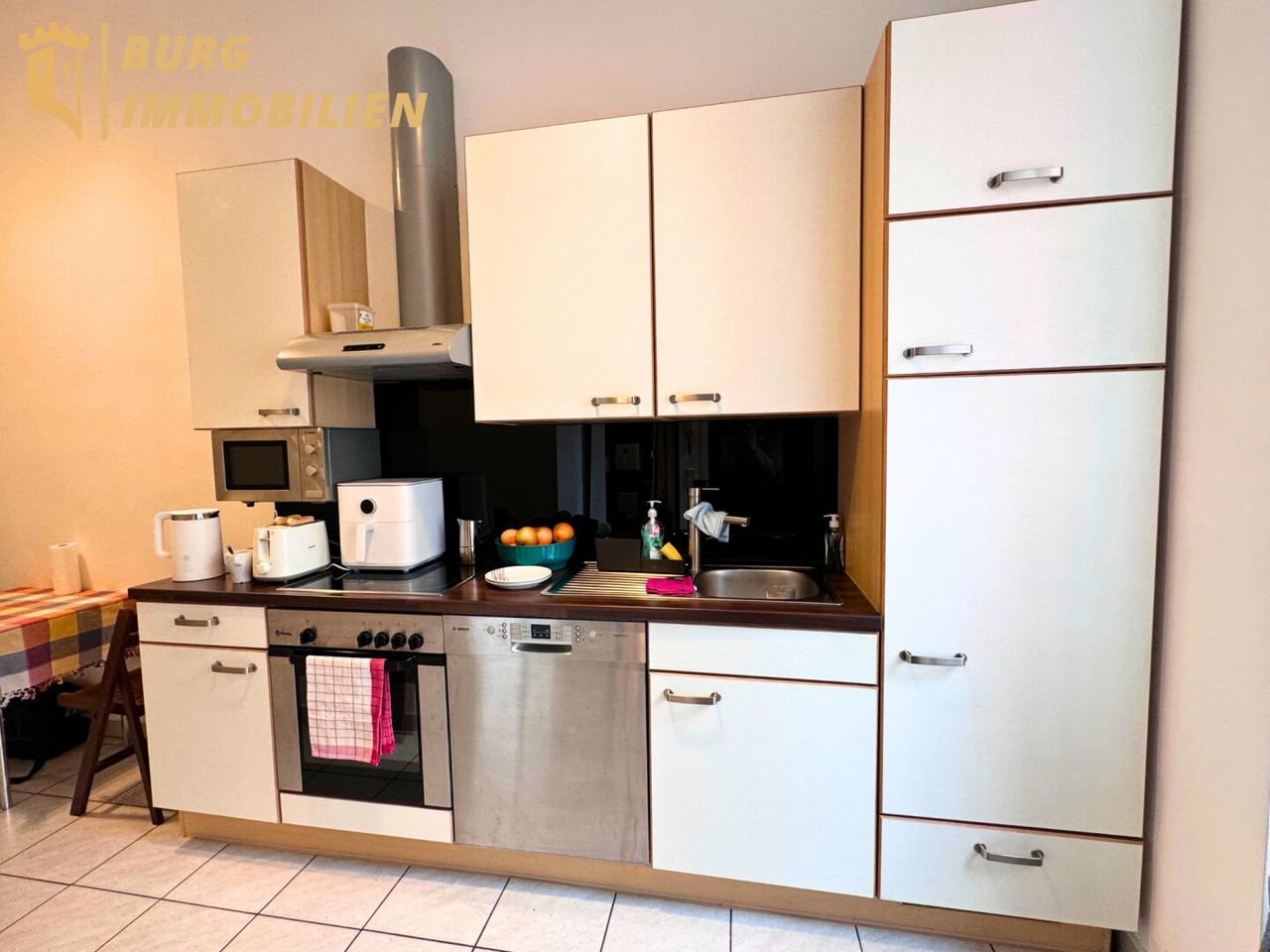 - Eine moderne Einbauküche mit allen notwendigen Elektrogeräten und viel Stauraum.
