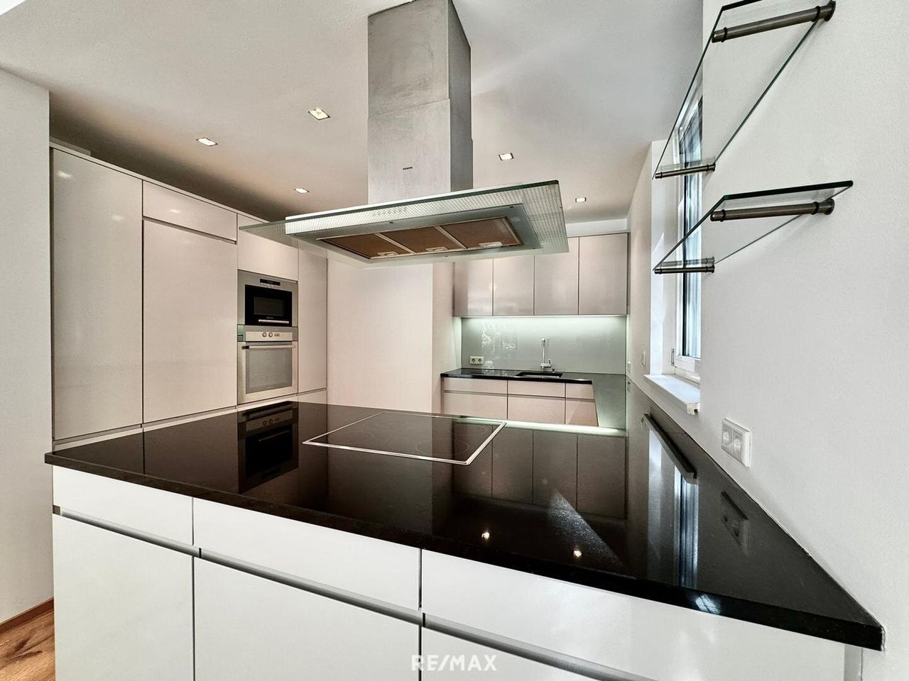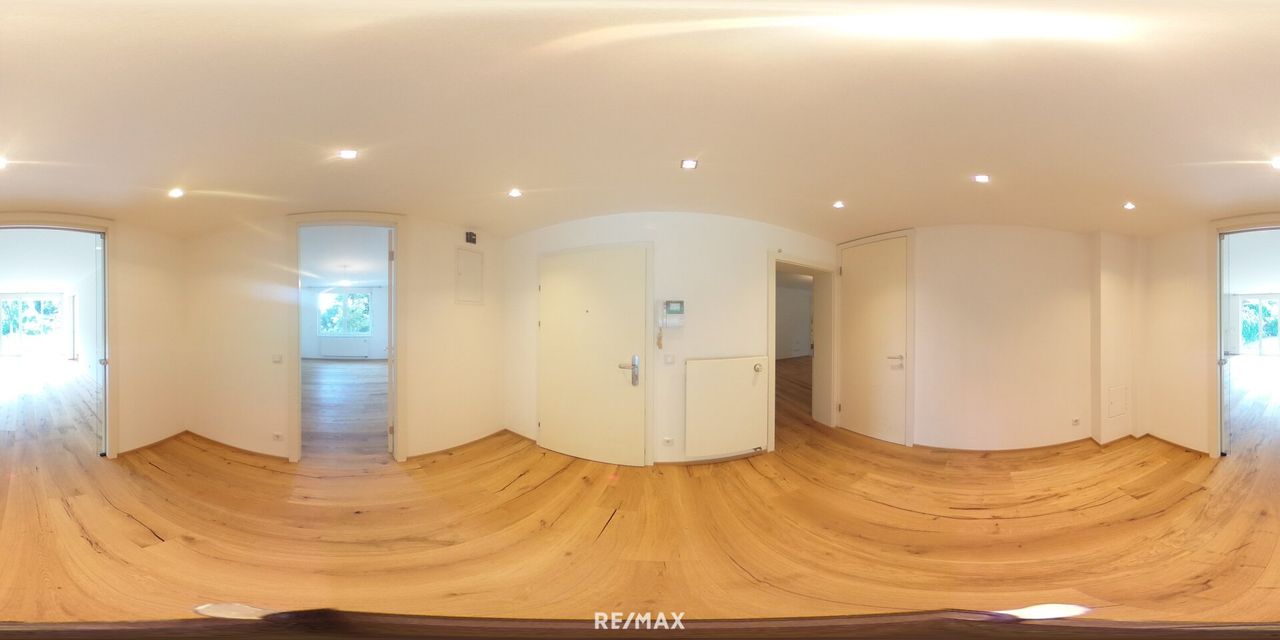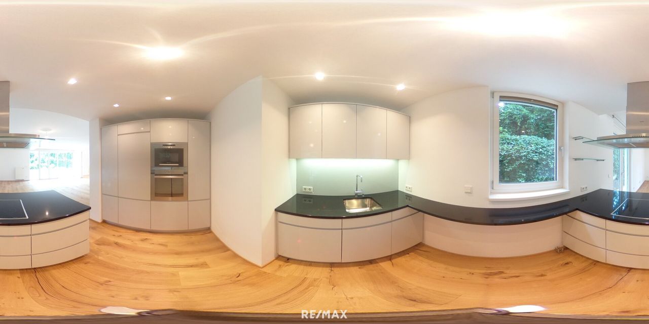 Wir betreten die Wohnung in ein großes, annähernd quadratisch geschnittenes Vorzimmer. Hier finden Sie nicht nur reichlich Platz für Ihre Garderobe, auch Ihre Gäste können Sie hier in Empfang nehmen. Durch eine breite Schiebetür gelangen wir in den ausladenden Wohn- Essbereich mit angeschlossener offener Küche. Aufgrund der vielen Glaselemente erscheint der Raum wunderbar hell und freundlich. In der gesamten Wohnung wurde ein neuer, sehr hochwertiger, Parkettboden verlegt, der den besonderen Anspruch dieser Immobilie unterstreicht.