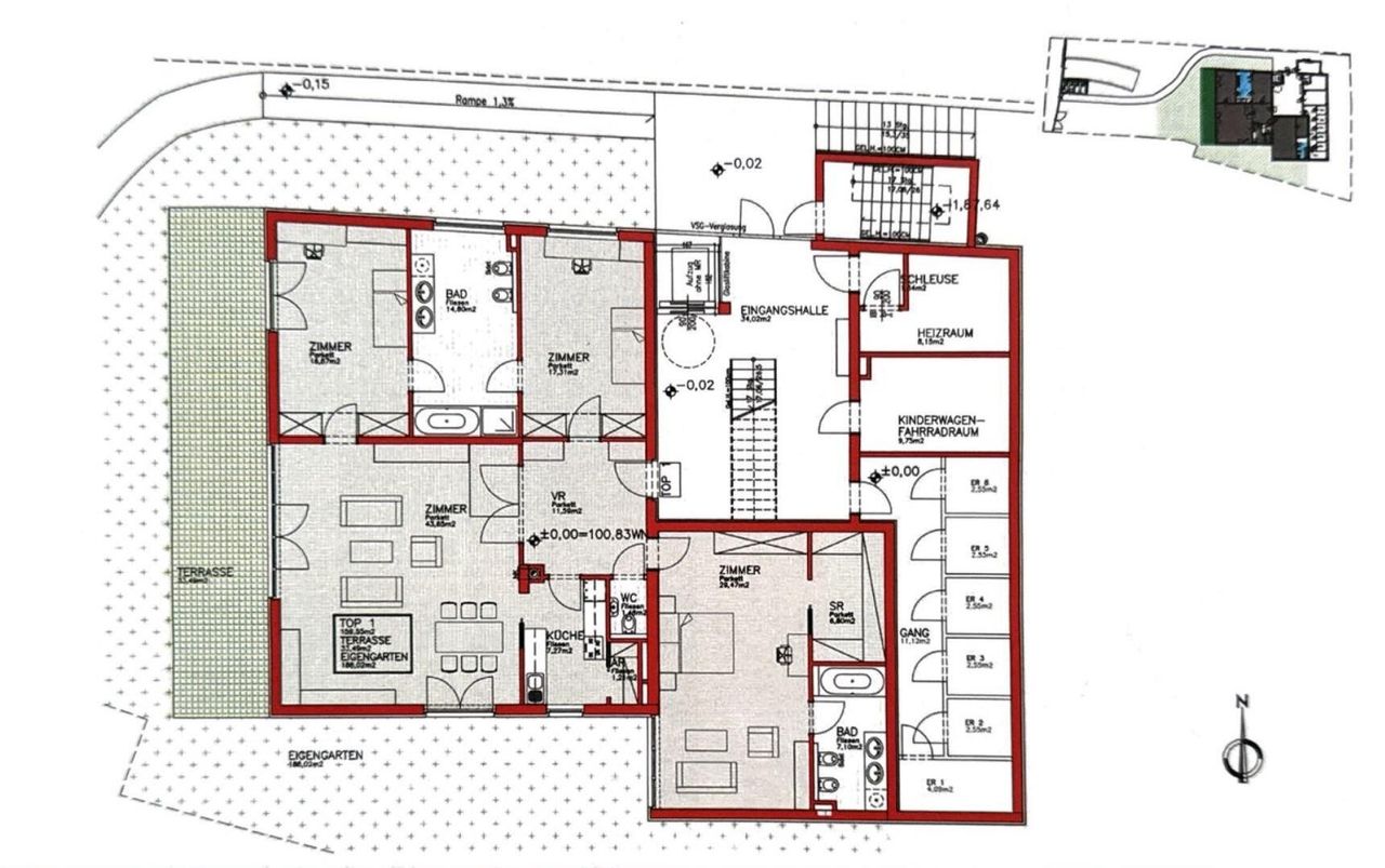 Auf gleicher Ebene, auf der sich auch die Wohnung befindet, gelangen wir auch in den Kellerraum und das der Wohnung zugeordnete Kellerabteil. Natürlich gibt es hier auch einen Fahrrad- und Kinderwagenabstellraum.