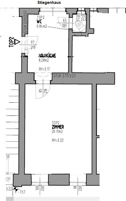 Top 2, Altbau, Hochparterre, 1 Zimmer, Vorraum mit Küchenanschlüssen, extra WC (mit integrierter Dusche im WC, wie am Boot)