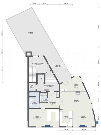 - privates Stiegenhaus und Vorraum mit 30 m²