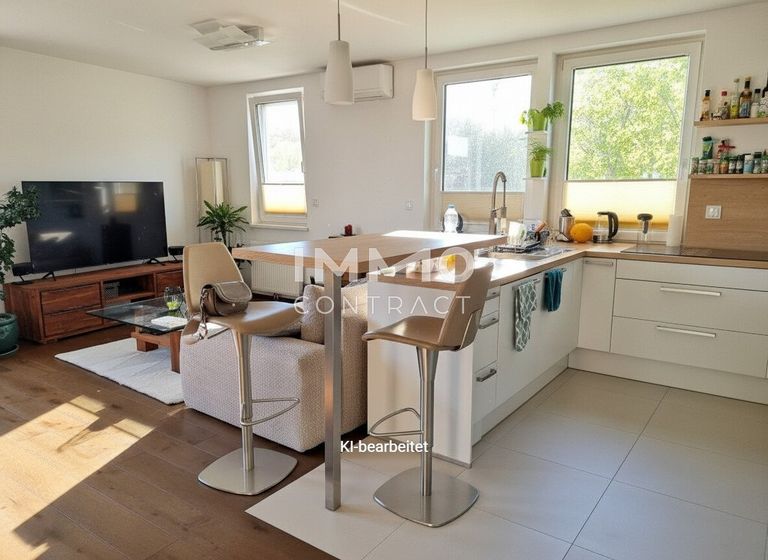 AUßERGEWÖHNLICHE DACHGESCHOSSWOHNUNG mit XL- Terrasse & großzügigem Garagenplatz- Topzustand in 1130 Wien Dieser exklusive Pärchentraum vereint Komfort, Stil und Privatsphäre auf höchstem Niveau! - Ein XL-Garagenplatz für Ihr Auto auch für zwei kleinere Fahrzeuge geeignet - Lift mit direktem Zugang in die Wohnung - privates Stiegenhaus und Vorraum mit 30 m² - origineller Grundriss mit offenem Wohnkonzept - großzügige Wohnküche( ca .40 m²) mit Frühstücksbar und hochwertigen Siemens Geräten -ruhiges Schlafzimmer mit begehbarer Garderobe -bezauberndes Badezimmer mit Walk-in- Dusche -separates WC -Wintergarten -ideal als Fitnessbereich oder Home Office Das absolute HIGHLIGHT: