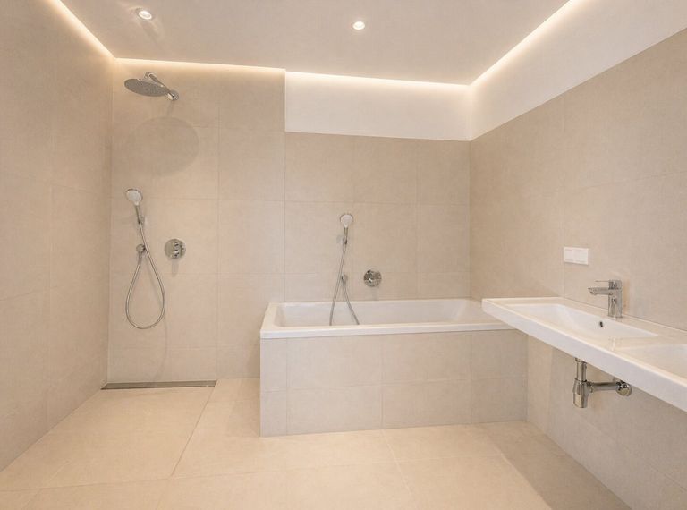 Feinsteinzeugfliesen in Bad und WC
