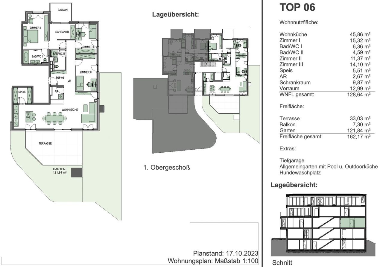 Diese hochwertig geplante Wohnung (TOP 06) befindet sich im 1. Obergeschoß und überzeugt mit einer großzügigen Wohnnutzfläche von 128,64 m² sowie weitläufigen Freiflächen. Die 45,86 m² große Wohnküche bildet das zentrale Herzstück der Wohnung und bietet dank großflächiger Verglasung ein lichtdurchflutetes Wohnambiente. Der direkte Zugang zur großen Terrasse und dem Gartenbereich sorgt für ein außergewöhnliches Wohngefühl mit viel Freiraum.