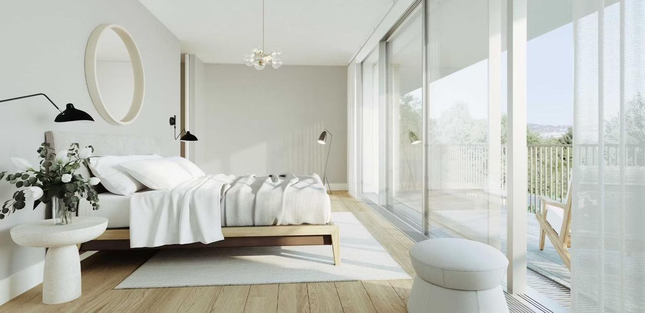 Das Apartment besticht durch einen offenen Grundriss, der den Wohn- und Essbereich großzügig miteinander verbindet. Große Glasfronten durchfluten die Räume mit Tageslicht und schaffen eine freundliche, einladende Wohnatmosphäre.
