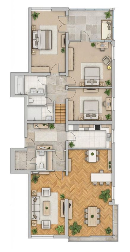 Nicht nur die durchdachte Raumanordnung sondern auch die hochwertige Gestaltung und Ausstattung überzeugen: