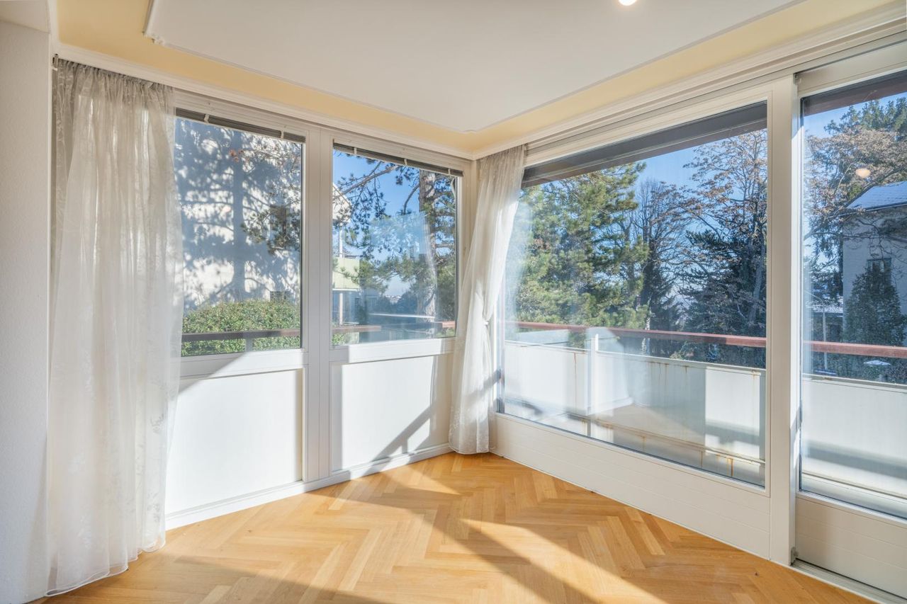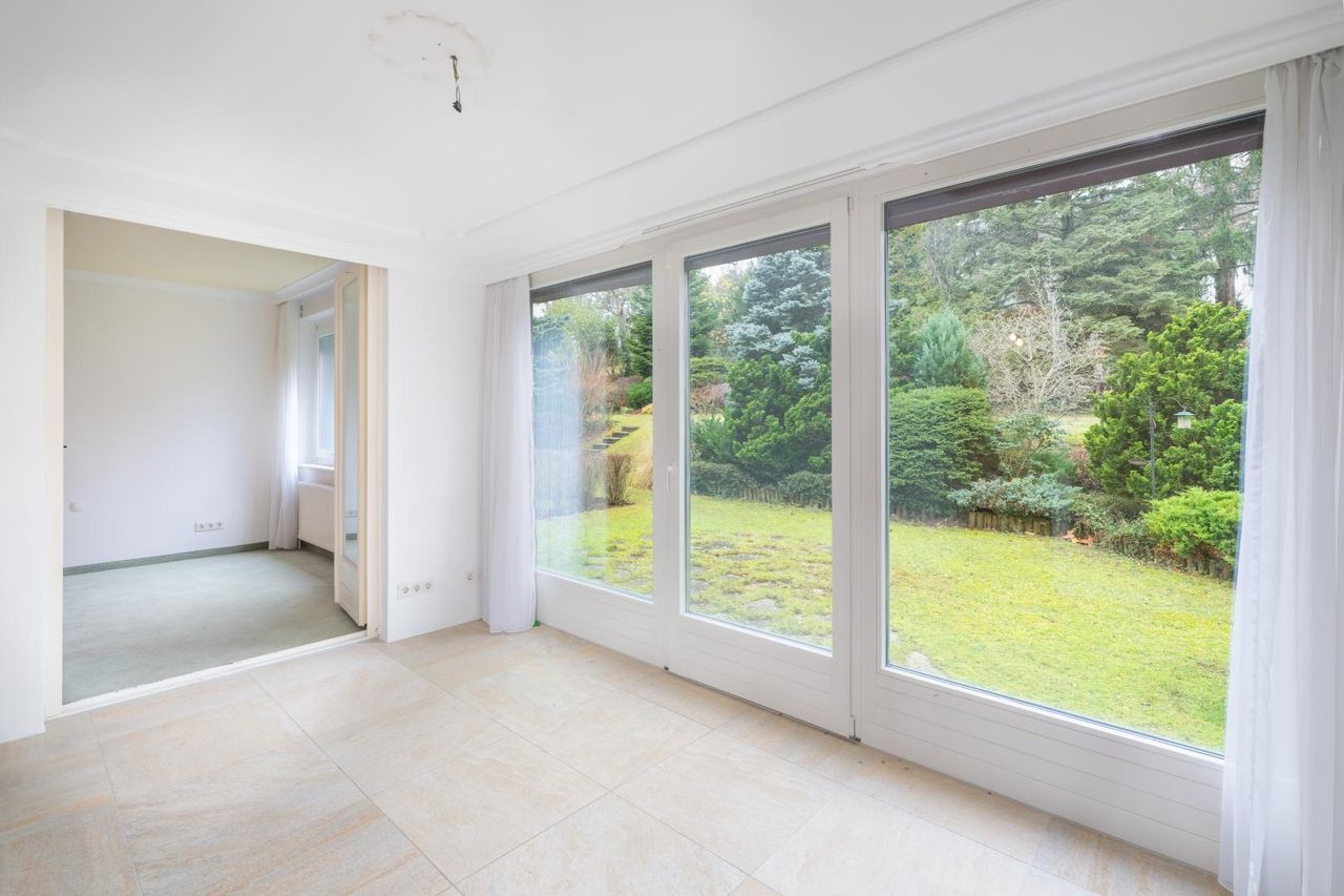Derzeit mit 5 bzw. 6 Zimmern strukturiert, voll Licht aus Südost und Nordwest, mit flexibel gestaltbaren Grundriss und direktem Zugang in den ruhig gelegenen Eigengarten.