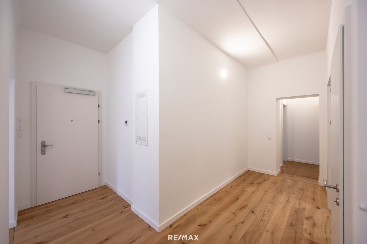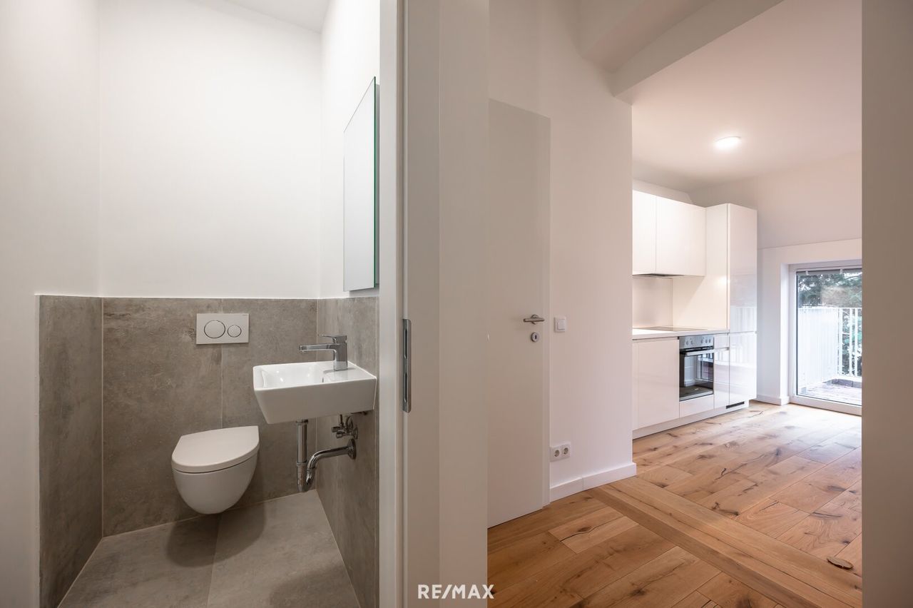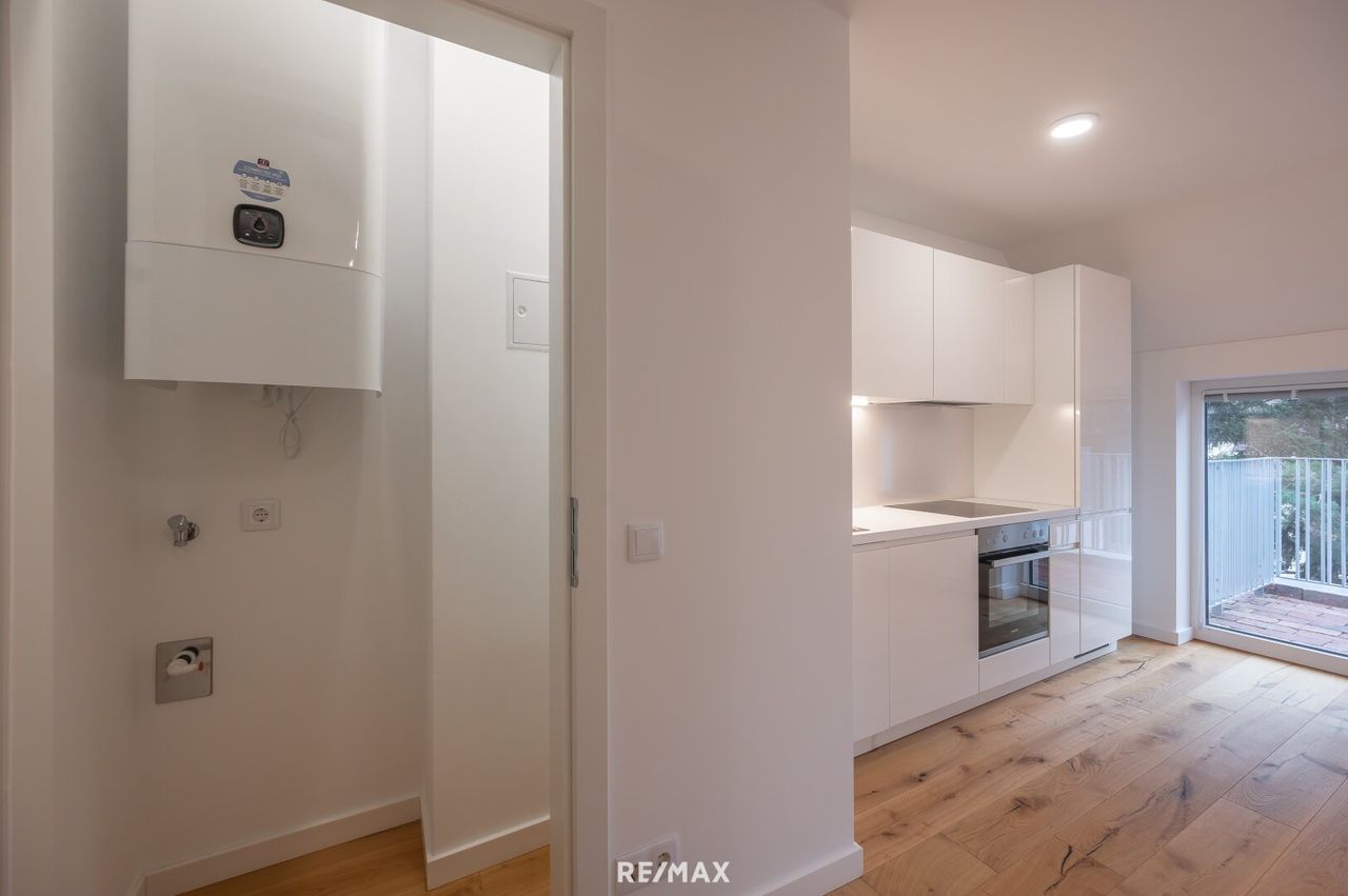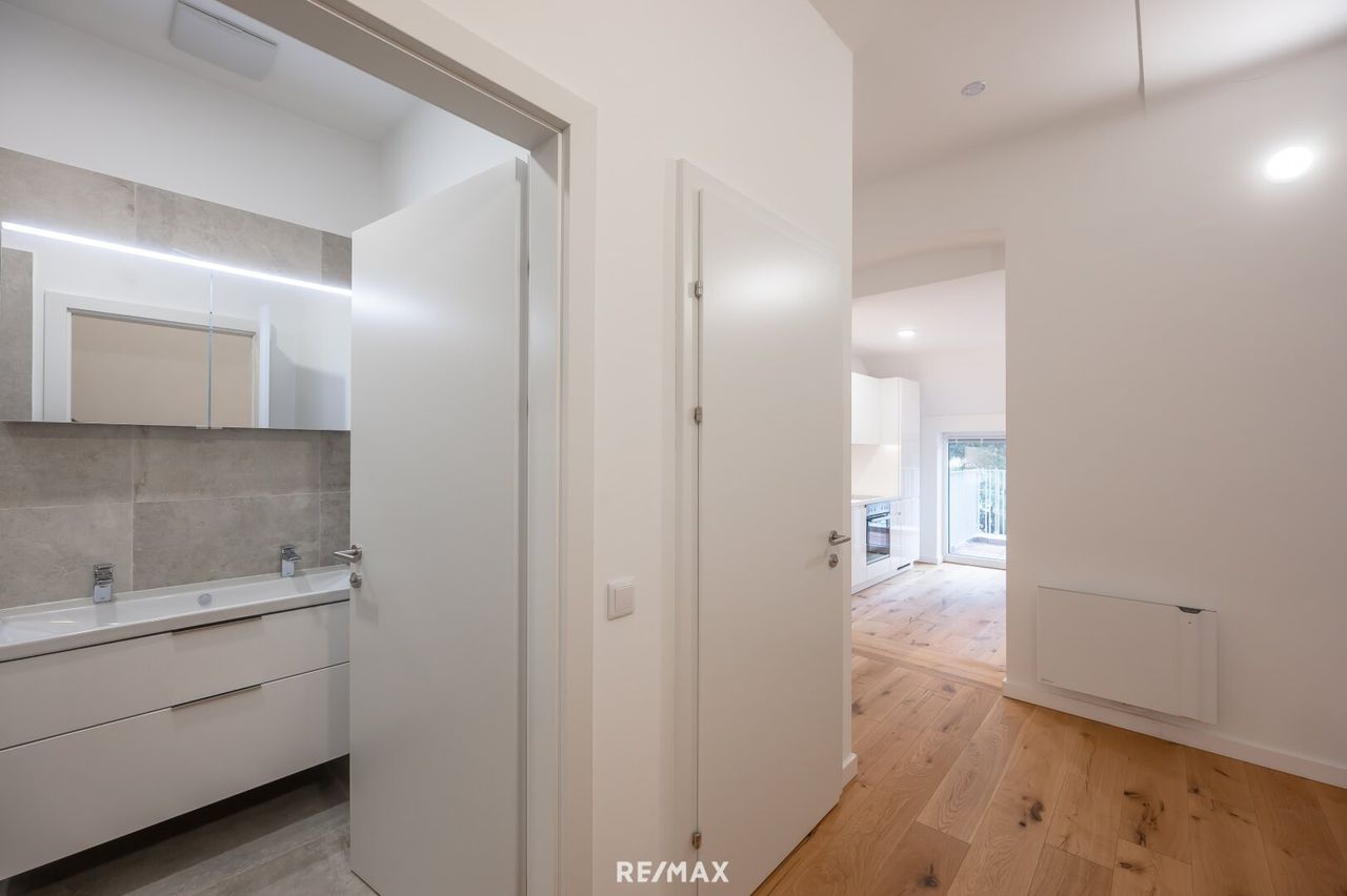 Highlights der Wohnung - Südseitige ca. 6,55 m² Terrasse - Hochwertige Einbauküche, inkl. Marken-Geräten - Modernes Badezimmer mit Badewanne, LED-Spiegelschrank und Markenarmaturen - Abstellraum mit Waschmaschinenanschluß - Innovatives Heizsystem: Infrarot-Konvektoren (fernsteuerbar über App) & Fußboden-Infrafloor Heizmatten im Vorraum, Bad und WC - Klimaanlage im...