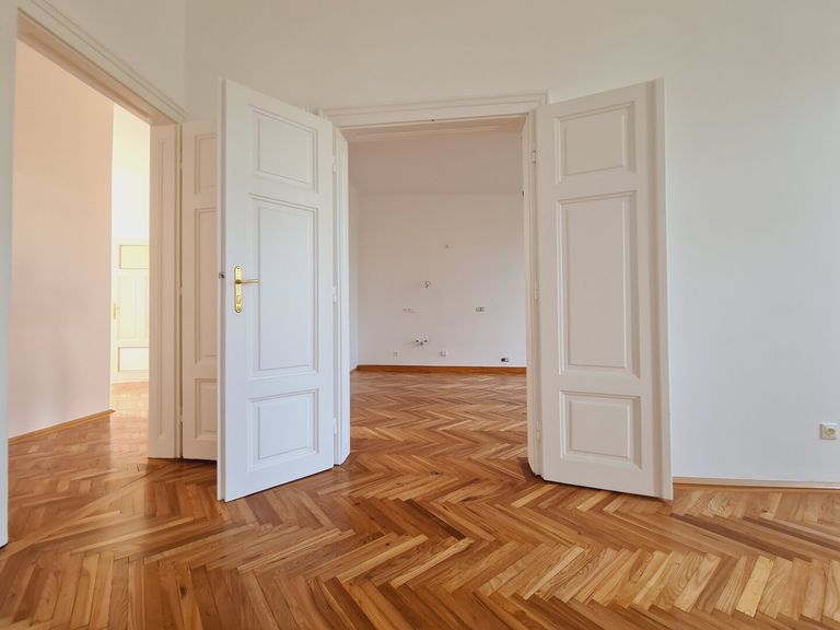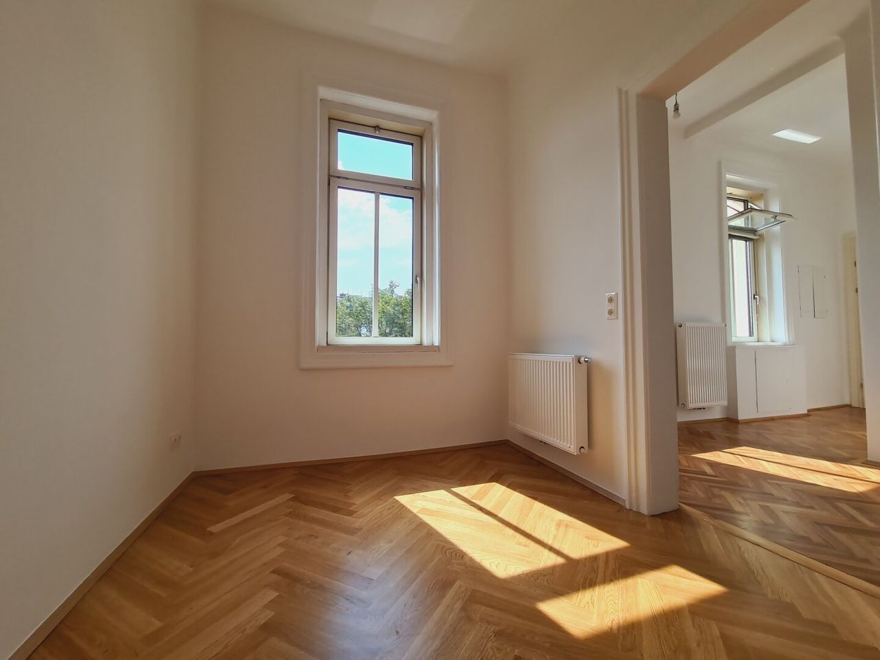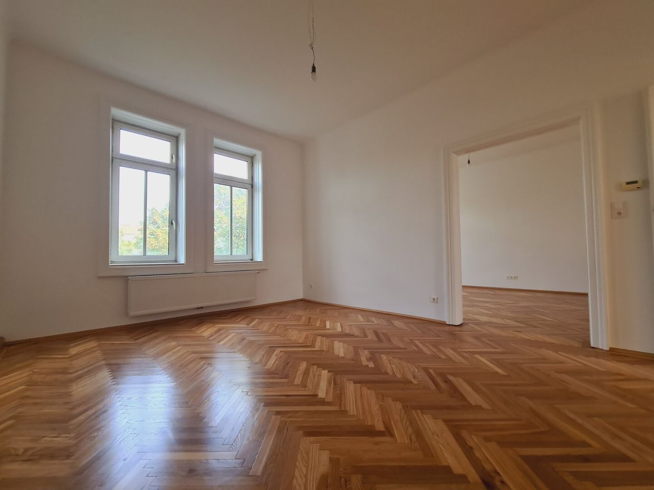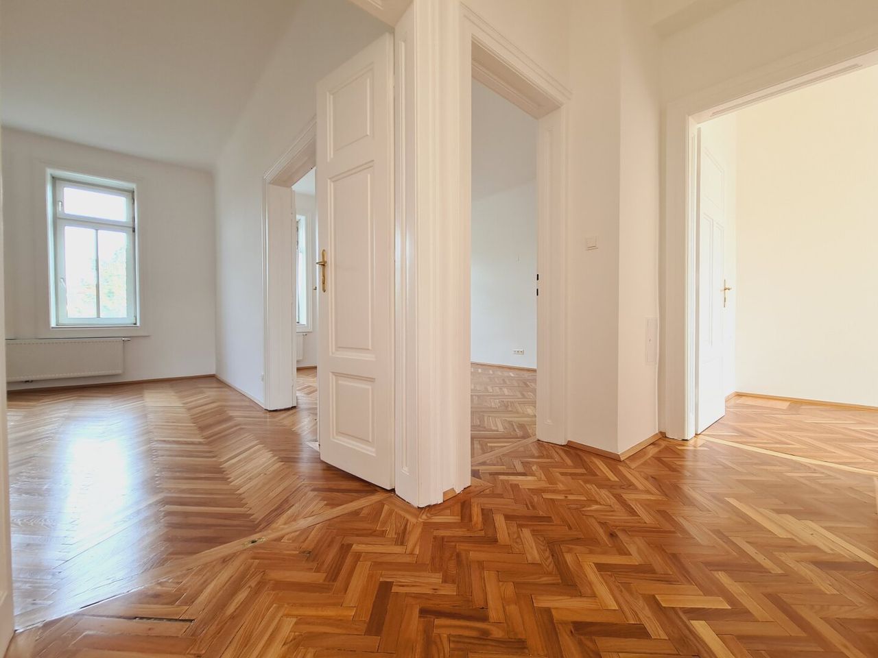 Top 1 Altbau Nähe U4 Ober St. Veit, Hochparterre - 2 Zimmer zeigen sowie Balkon und Garten sind südseitig, 3 Zimmer zeigen auf den Hietzinger Kai