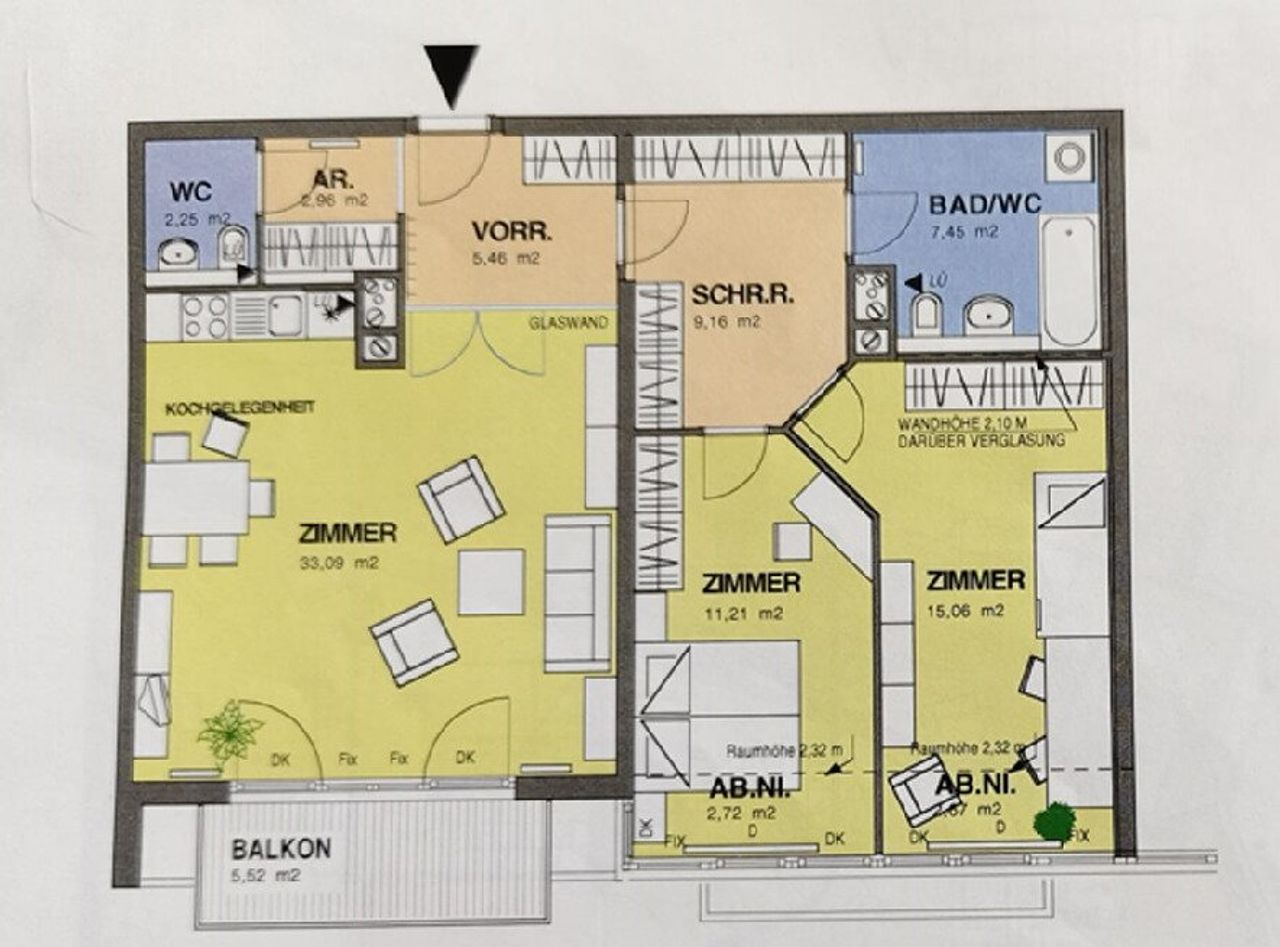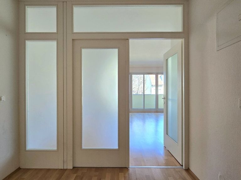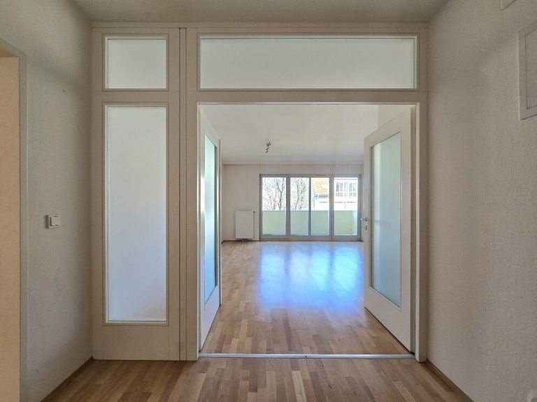 Auf ca. 92 m² Wohnfläche erwarten Sie drei Zimmer, einen (durchgängig) begehbaren Schrankraum, ein großzügiges Badezimmer mit Wanne und WC, wie auch ein separates Gäste-WC, ein Vorraum mit einer Garderoben-Nische und ein Balkon mit Fernblick, der über die Wohnküche aus erreichbar ist. Buchen-Parkettböden sowie Fliesen in den Nassräumen unterstreichen das gehobene Ambiente.