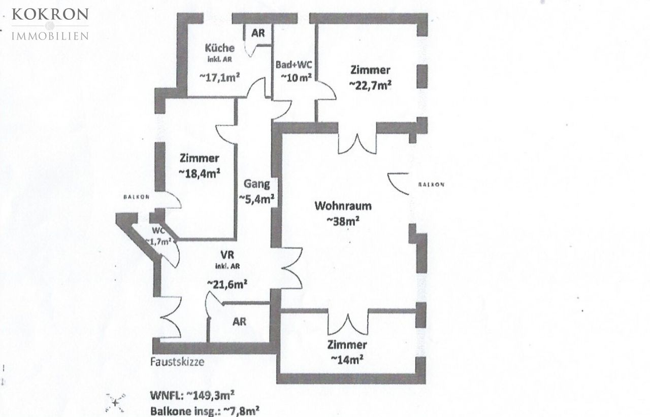 - Wohnfläche: ca. 150 m² plus 2 Balkone, großzügig angelegt, mit vielseitiger Raumgestaltung