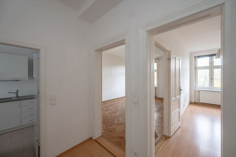 Zum Verkauf steht eine ca. 47 m² große, sanierungsbedürftige 2-Zimmer-Altbauwohnung im 1.OG eines klassischen Wiener Altbaus. Die Immobilie bietet viel Potenzial für kreative Köpfe und Investoren.