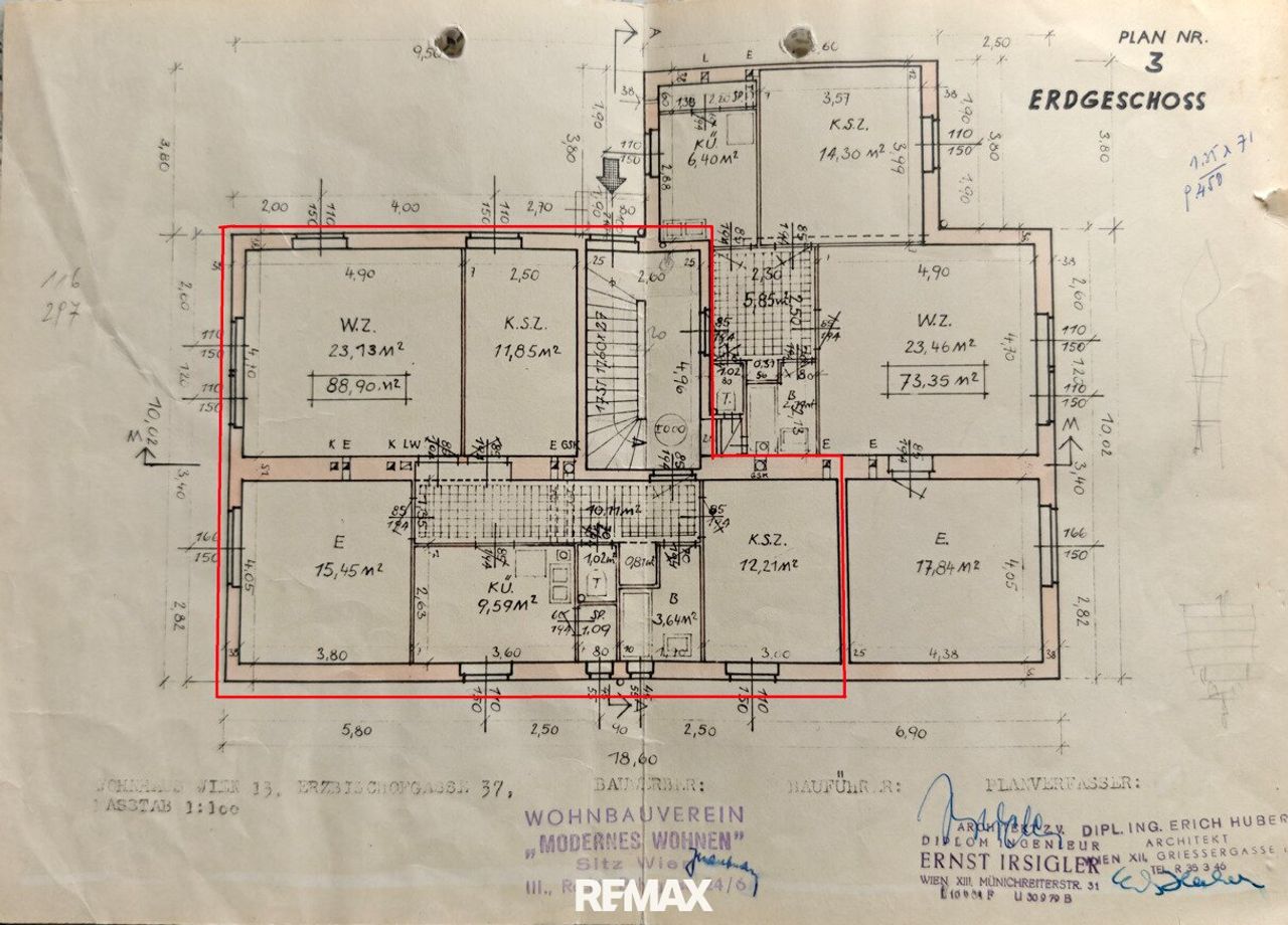 Durch eine etwaige Umgestaltung und Umbau der Wohnung könnte man die aktuelle Küche als Badezimmer verwenden und die Küche in das Zimmer nebst dem Wohnzimmer verlegen und somit ein großzügiges ca. 35 m² großes Wohn-, Esszimmer & Küche zu schaffen. Ein Termin bei der Baupolizei MA37 ist vereinbart - weitere Unterlagen und Informationen werden nachgereicht! Der Wohnung ist ein eigenes Kellerabteil zugeordnet, der allgemeine Haus Keller verfügt weiters über einen allgemein zugänglichen Waschmaschinenraum.