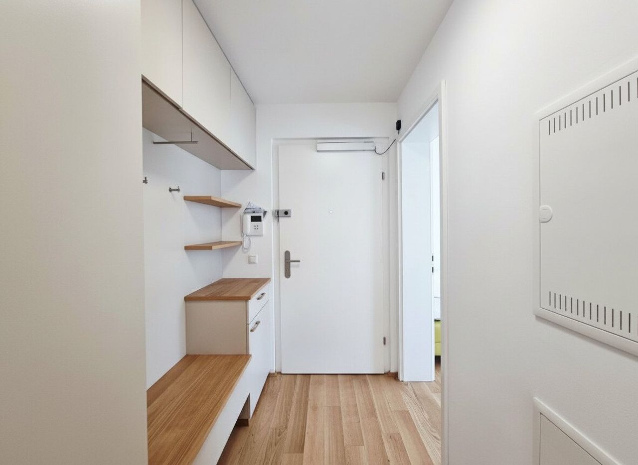 Vorzimmer, Wohnküche sowie zwei Zimmer jeweils mit Terrassen- und Balkonzugang, Abstellraum, Badezimmer sowie separates WC.