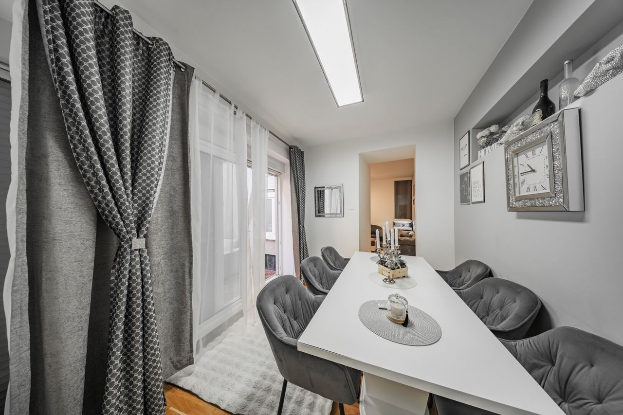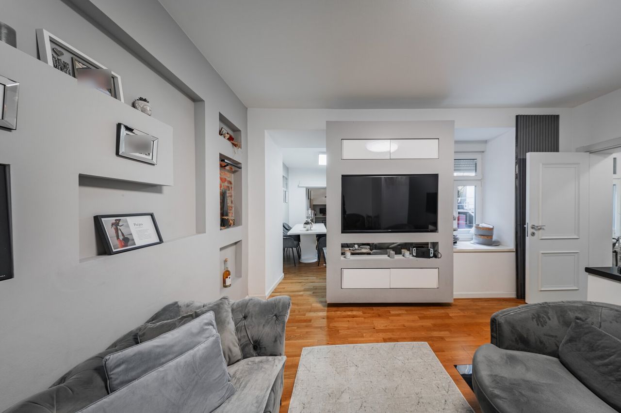 Stilvolle Parkett- und Fliesenböden, moderne Fenster mit Mehrfachverglasung, Fußbodenheizung sowie die offene Küche schaffen ein harmonisches Wohngefühl und verbinden klassischen Altbaucharakter mit moderner Wohnqualität.