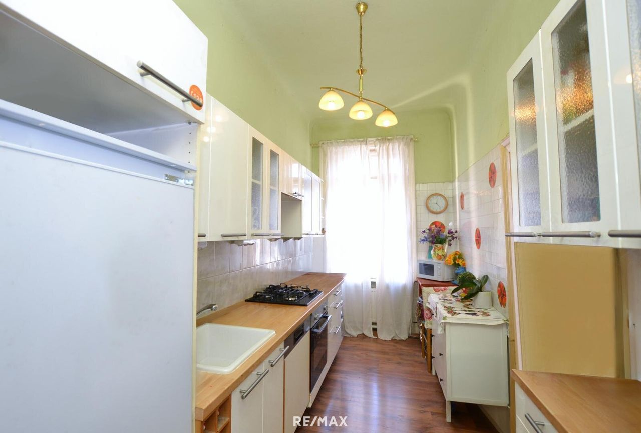 Mit 3 Zimmern, einem Kabinett, einem großen Vorzimmer, Küche, Badezimmer und einem separaten WC auf 132 m² hat diese Wohnung viel Potential für individuelle Gestaltung im Rahmen einer umfassenden Sanierung.