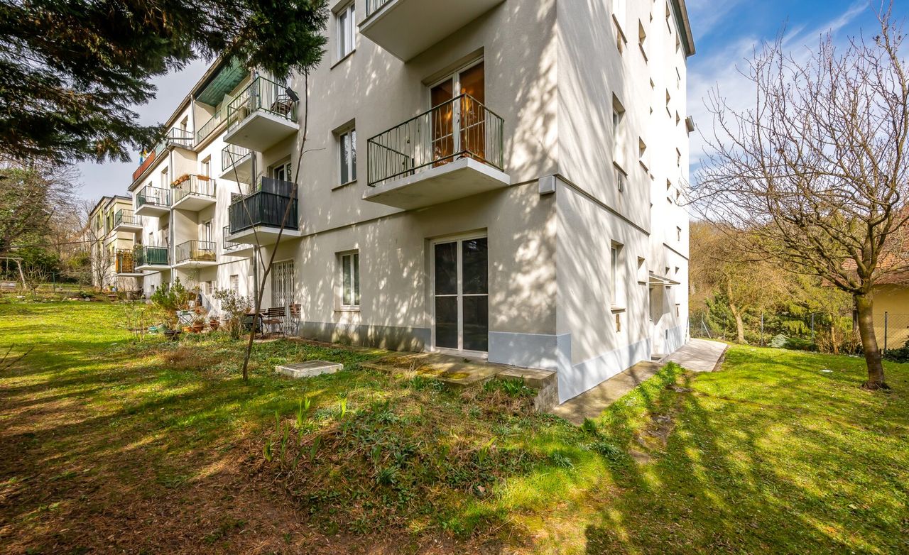 Die Wohnung befindet sich in der Bujattigasse, 1140 Wien, und bietet eine idyllische, ruhige Umgebung, einschließlich eines kleinen Baches und viel Grün direkt vor der Haustür.