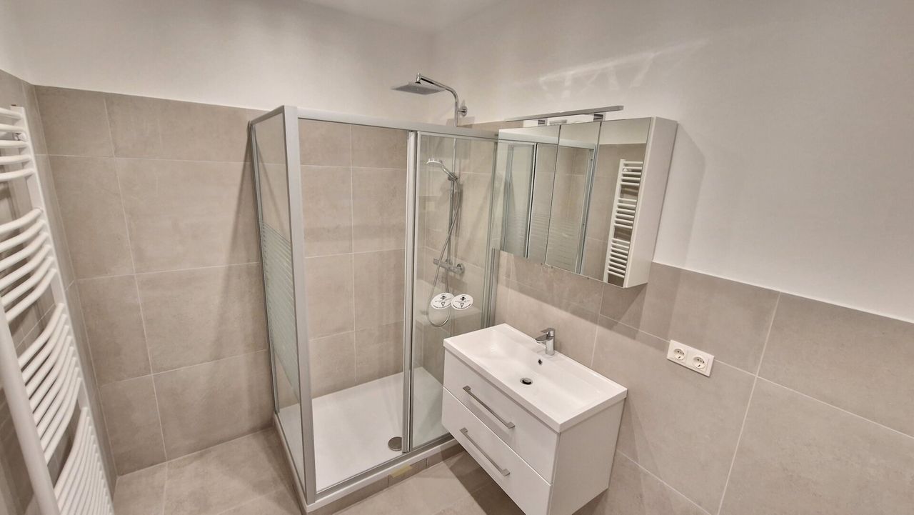 Diese kernsanierte Eigentumswohnung liegt im 3. Stock eines Wohnhauses in ruhiger Lage und bietet die perfekte Kombination aus Helligkeit und guter Anbindung. Da das Haus keinen Lift besitzt, bleiben die Betriebskosten mit ca. € 300,– sehr überschaubar – und das tägliche Treppensteigen hält fit.