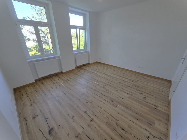 Chance Zum Verkauf gelangt diese sanierte (Erstbezug) Dachgeschoßwohnung in einem klassischen Altbaustilhaus - Jugendstil - Die ruhige und lichtdurchflutete Dachgeschoßwohnung ist folgendermaßen aufgeteilt: + Vorraum 03,85 m², mit Eichenparkett ausgestattet + Wohnzimmer 22,74 m², mit Eichenparkett ausgestattet + Küche 10,00 m², verfliest + Schlafzimmer 16,29 m², mit Eichenparkett ausgestattet, mit Zugang, Badezimmer und Garderobenraum + Badezimmer 04,30 m², mit Wanne ausgestattet, verfliest + Garderobenraum 02,16 m², mit Eichenparkett ausgestattet + WC, mit Handwaschbecken 1.00 m², verfliest _______________________________________________________ gesamt 60,34 m² AUSSTATTUNG: + Eichenparkett + Lift + 2fach verglaste Fenster + Vaillant Gastherme + Grohe Armaturen + Waschmaschinenanschluss