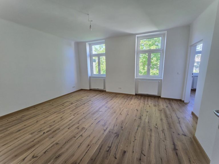 ++Ausgezeichneter Ausblick + Erstbezug + sanierte Dachgeschosswohnung + Zum Verkauf gelangt diese sanierte (Erstbezug) Dachgeschoßwohnung in einem klassischen Altbaustilhaus - Jugendstil - Die ruhige und lichtdurchflutete Dachgeschoßwohnung ist folgendermaßen aufgeteilt: + Vorraum 03,85m², mit Eichenparkett ausgestattet + Wohnzimmer 22,74m², mit Eichenparkett ausgestattet + Küche 10,00m², verfliest + Schlafzimmer 16,29m² mit Eichenparkett ausgestattet, mit Zugang Badezimmer und Garderoberaum + Badezimmere 04,30m², mit Wanne ausgestattet, verfliest + Garderoberaum 02,16m², mit Eichenparkett ausgestattet + WC mit HWB 01.00m², verfliest _______________________________________________________ gesamt 60,34m² AUSSTATTUNG: + Eichenparkett + Lift + 2fach verglaste Fenster + Vaillant Gastherme + Grohe Armaturen + Waschmaschinenanschluss