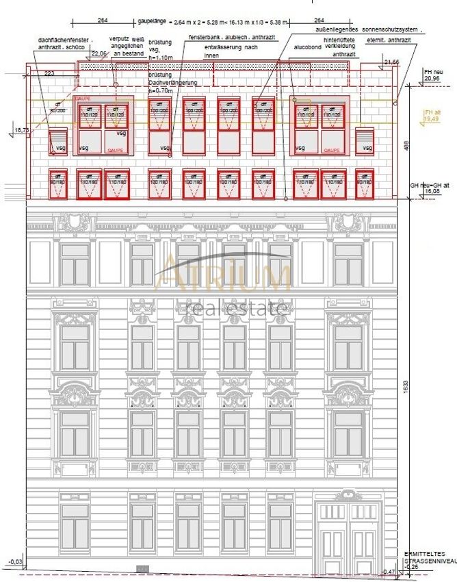 Zum Verkauf steht ein Rohdachboden mit aufrechter Baugenehmigung für drei Wohneinheiten in einem viergeschossigen Wohnhaus mit einer Gesamtwohnnutzfläche von 598,41 m².