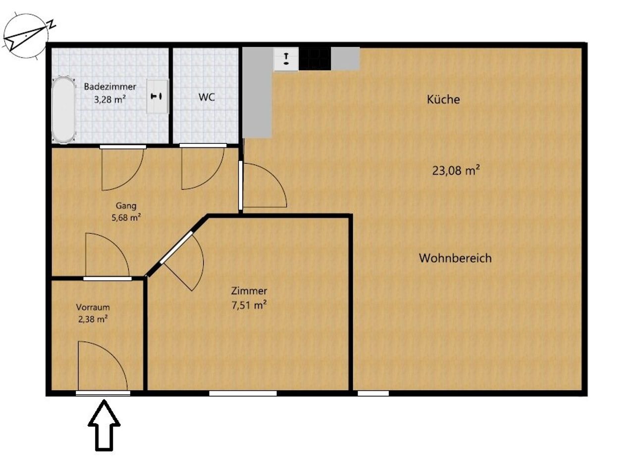 - Wohnfläche: 43,49 m² (2 Zimmer)