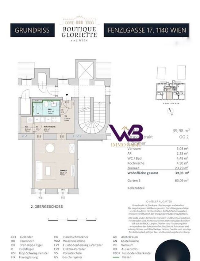 Bitte beachten Sie, dass wir aufgrund der Nachweispflicht gegenüber dem Eigentümer nur Anfragen mit vollständiger Angabe der Anschrift bearbeiten können. Wir weisen darauf hin, dass die Firma WB IMMO GmbH in einem wirtschaftlichen Naheverhältnis zum Abgeber steht. Unsere gesetzlichen Pflichten als Doppelmakler werden dadurch jedoch nicht beeinträchtigt. Sämtliche Angaben sind ohne Gewähr und beruhen auf Informationen des Auftraggebers.