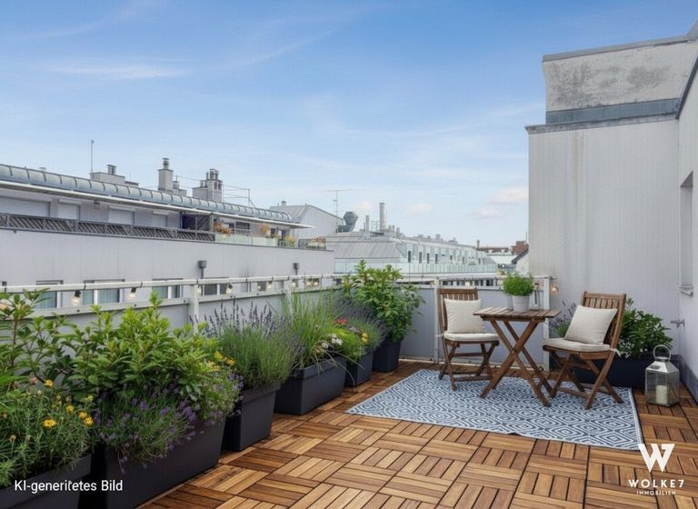 Herzlich Willkommen über den Dächern von Penzing! Diese charmante Dachgeschosswohnung im Herzen von Penzing ist mehr als nur ein Zuhause – sie ist ein Rückzugsort mit Charakter. Auf rund 53 m² Wohnfläche erwartet Sie ein lichtdurchfluteter Wohntraum mit zwei großzügigen Dachterrassen (je ca. 19 m²), die den Tag mit Sonne und Weitblick krönen. Kein Platzverlust durch Dachschrägen, sondern klare Linien, ein durchdachter Grundriss und ein eleganter Laminatboden, Die Wohnung wurde vollständig saniert – inklusive aller Leitungen, Heizung und Badezimmer. Ein eigener Stellplatz im Innenhof, ein Kellerabteil sowie Gemeinschaftsräume wie Fahrradraum und Waschküche runden das Angebot ab.