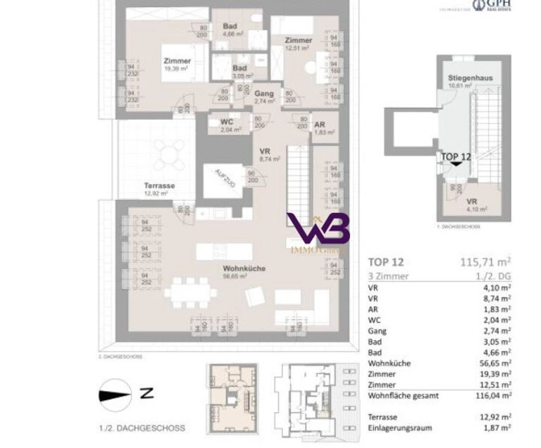 Top 12/1. DG und 2. DG ca. 116 m2 Wohnfläche, ca. 13 m2 Terrasse
