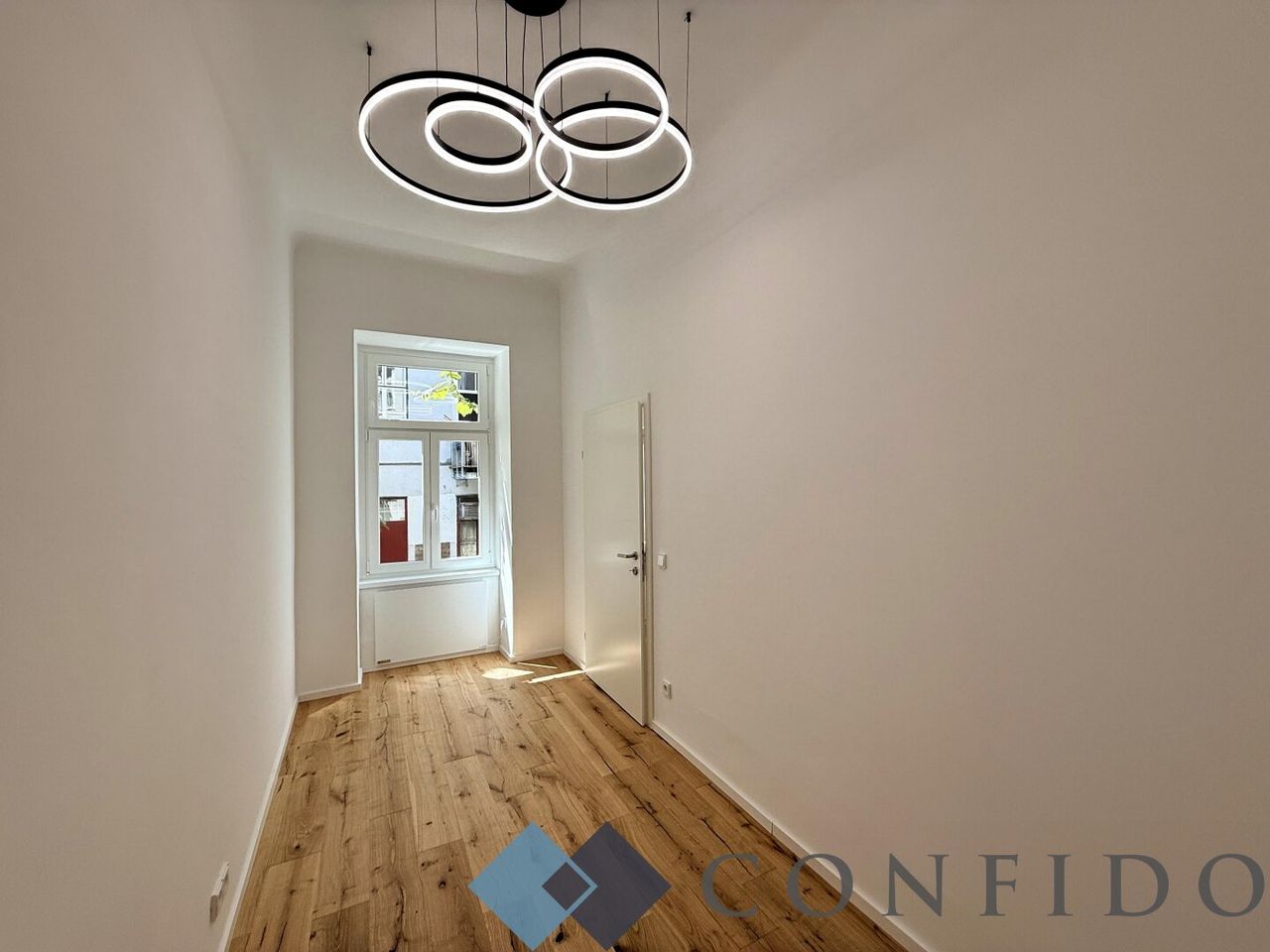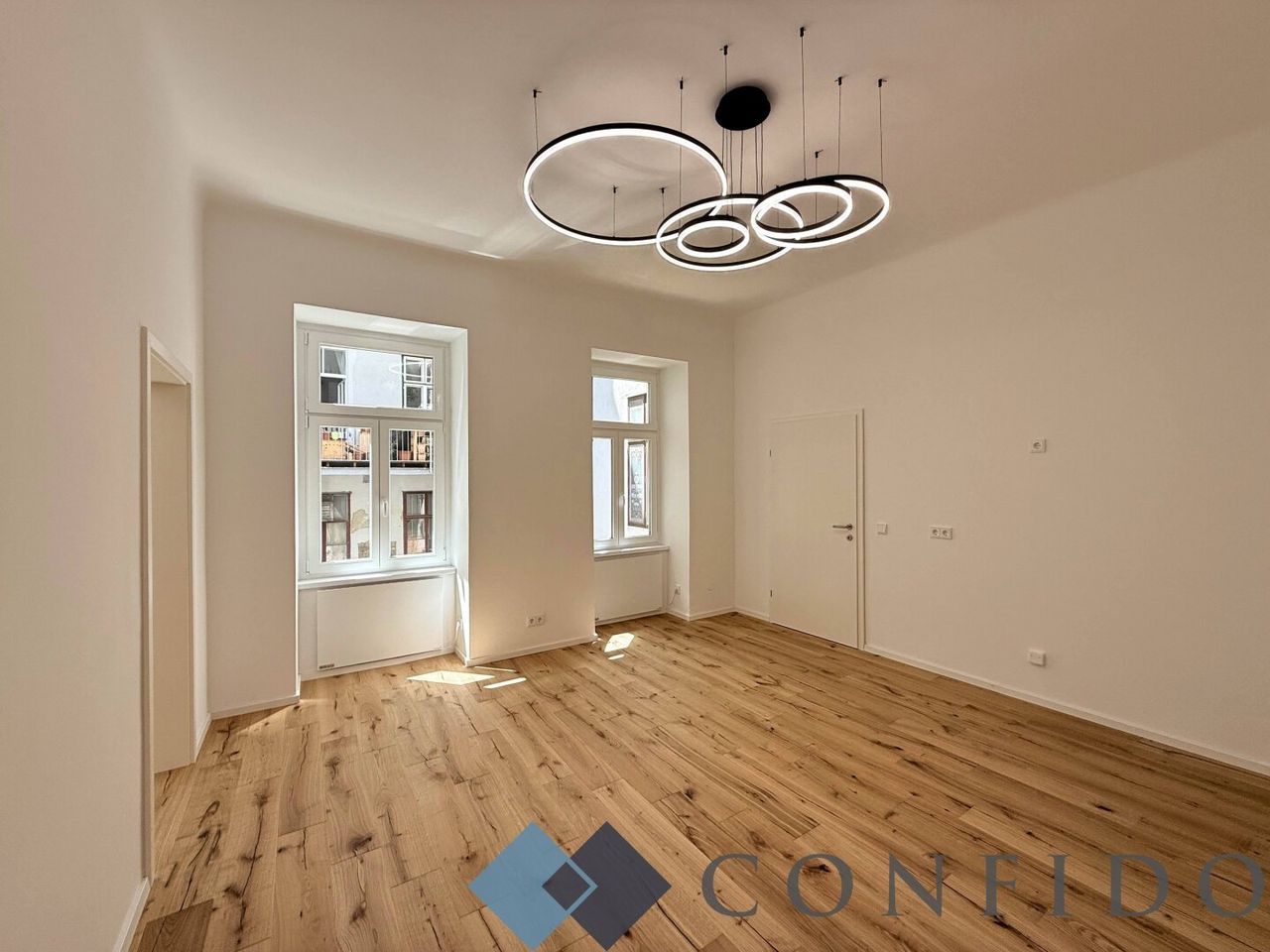 In der Nobilegasse im 15. Bezirk befindet sich diese neu sanierte, rund 47m² große Wohnung im Hochparterre eines sehr schönen Altbauhauses. Sie ist ausschließlich hofseitig ausgerichtet und bietet dadurch eine besonders ruhige Wohnatmosphäre. Der Eichen-Dielenboden verleiht der Wohnung eine elegante, warme Ausstrahlung. Der Grundriss ist gut durchdacht: Ein großzügiges Vorzimmer führt in ein gemütliches Wohnzimmer mit allen Anschlüssen für eine Wohnküche, ein ruhiges Schlafzimmer mit guter Größe, ein hochwertig ausgestattetes Badezimmer sowie eine separate Toilette. Das geschmackvoll verflieste Badezimmer wurde mit einem Doppelhandwaschbecken, einer Badewanne sowie mit einem Waschmaschinenanschluss versehen. Die Wohnung ist ein Erstbezug nach Sanierung und überzeugt durch ihre hochwertige Ausstattung, die stilvolle Altbauarchitektur und eine tolle Lage zu einem attraktiven Preis.