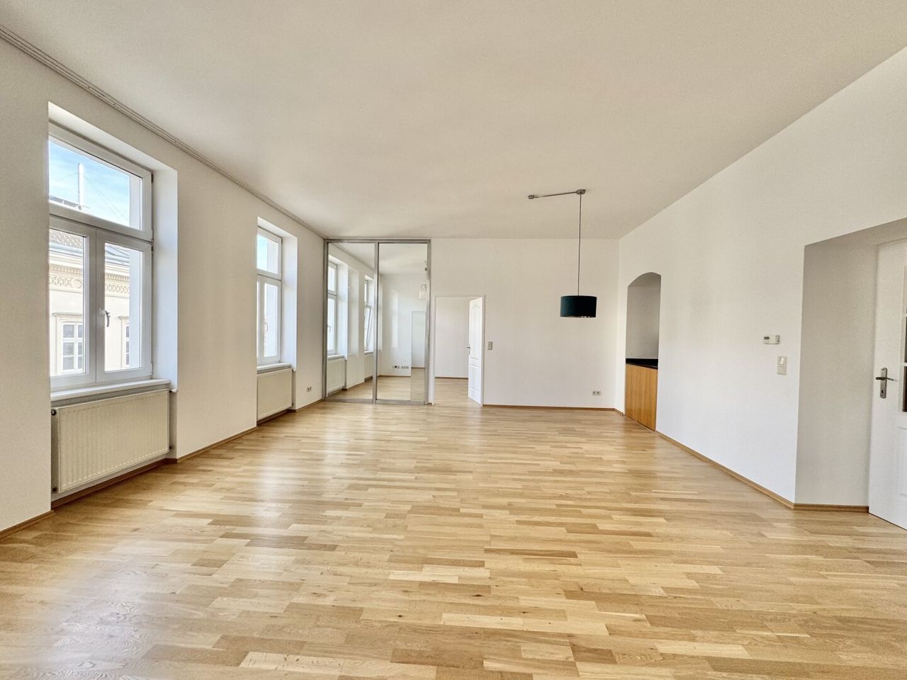 Diese großzügig geschnittene Wohnung liegt im 3. Liftstock eines Gründerzeithauses mit schön gegliederter Fassade aus 1882.
