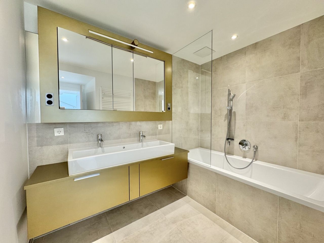 - Bad mit Wanne, 2x Waschbecken, Handtuchheizkörper und WM-Anschluss