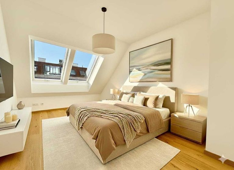 Diese wunderschöne und hochwertig ausgestattete DG-Maisonette liegt im 1.+ 2. Dachgeschoß mit Lift eines 60er-Wohnbauses, der 2020 komplett generalsaniert und das Dachgeschoß neu ausgebaut wurde.