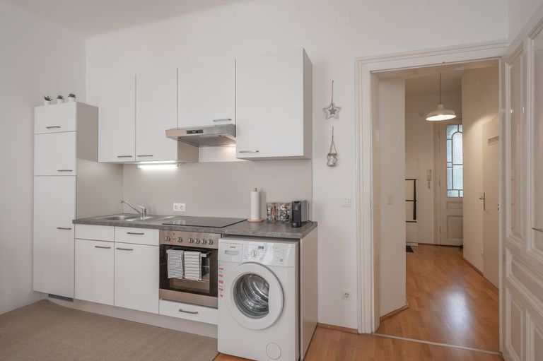 Das Haus ist ein klassischer Wiener Altbau mit gepflegter Fassade und einem modernen Lift. Die Wohnung bietet trotz ihrer kompakten Größe ein...