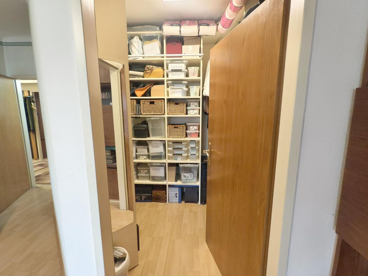 Vorraum, Küche, Wohnzimmer, WC, Bad, Schlafzimmer, begehbarer Schrankraum, Abstellraum, Loggia, Kellerabteil.