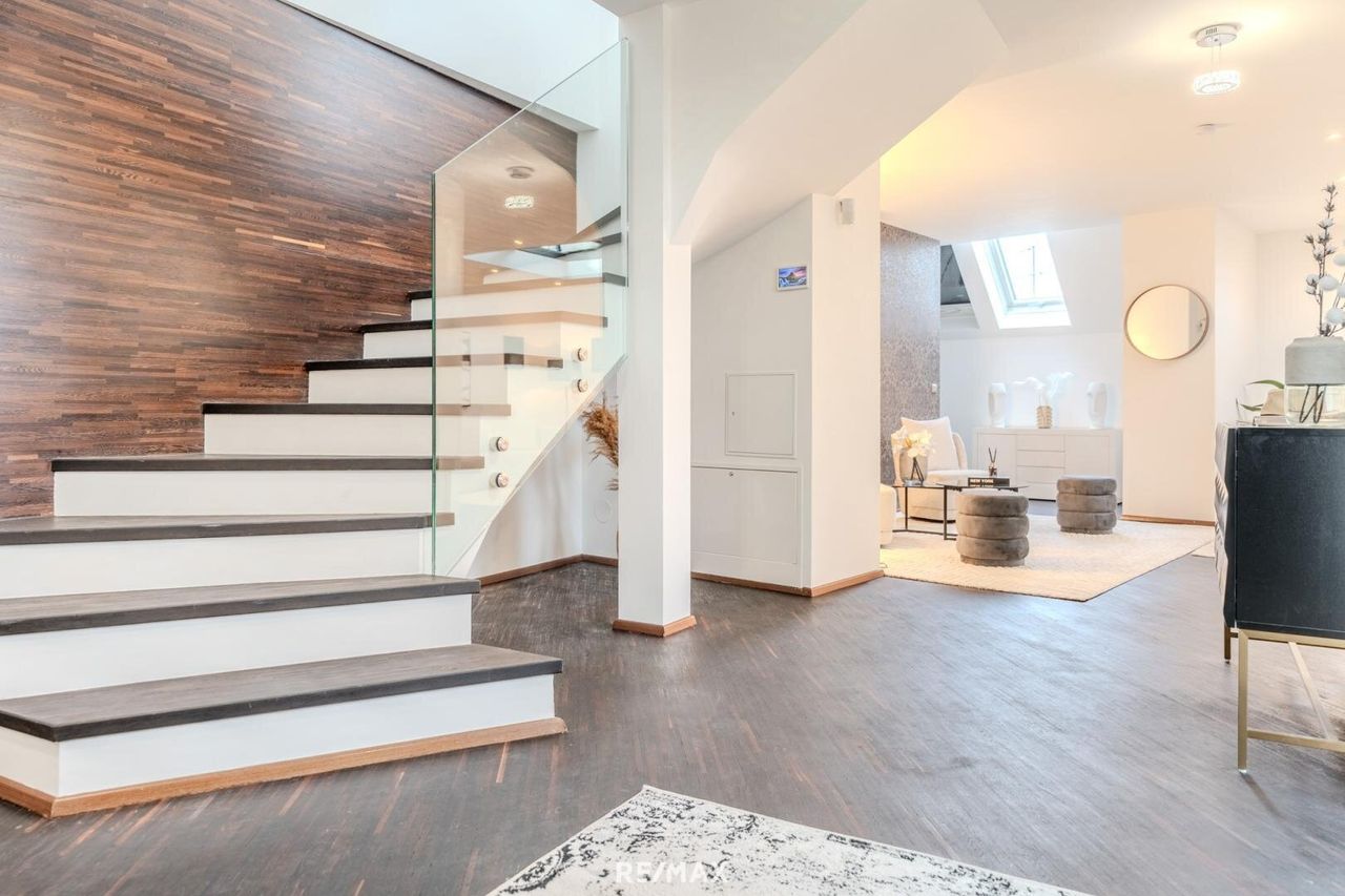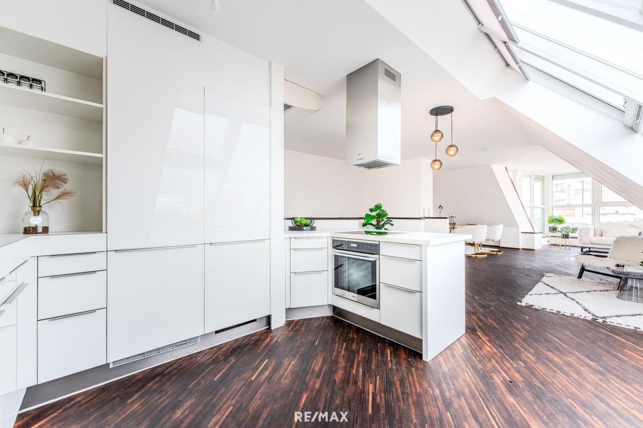 Mit ihrer beeindruckenden offenen Raumgestaltung und einer luxuriösen Ausstattung präsentiert sich diese Dachgeschosswohnung als perfekter Rückzugsort für Individualisten oder Paare mit Anspruch. Lichtdurchflutete Räume, hochwertigste Materialien und ein Design, das zeitlose Eleganz mit urbanem Chic verbindet, machen dieses Zuhause zu etwas ganz Besonderem.