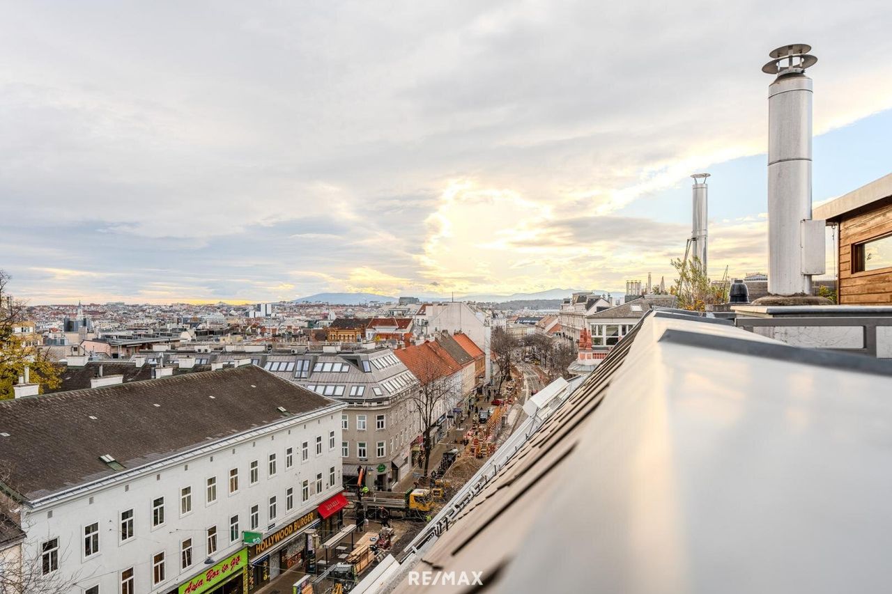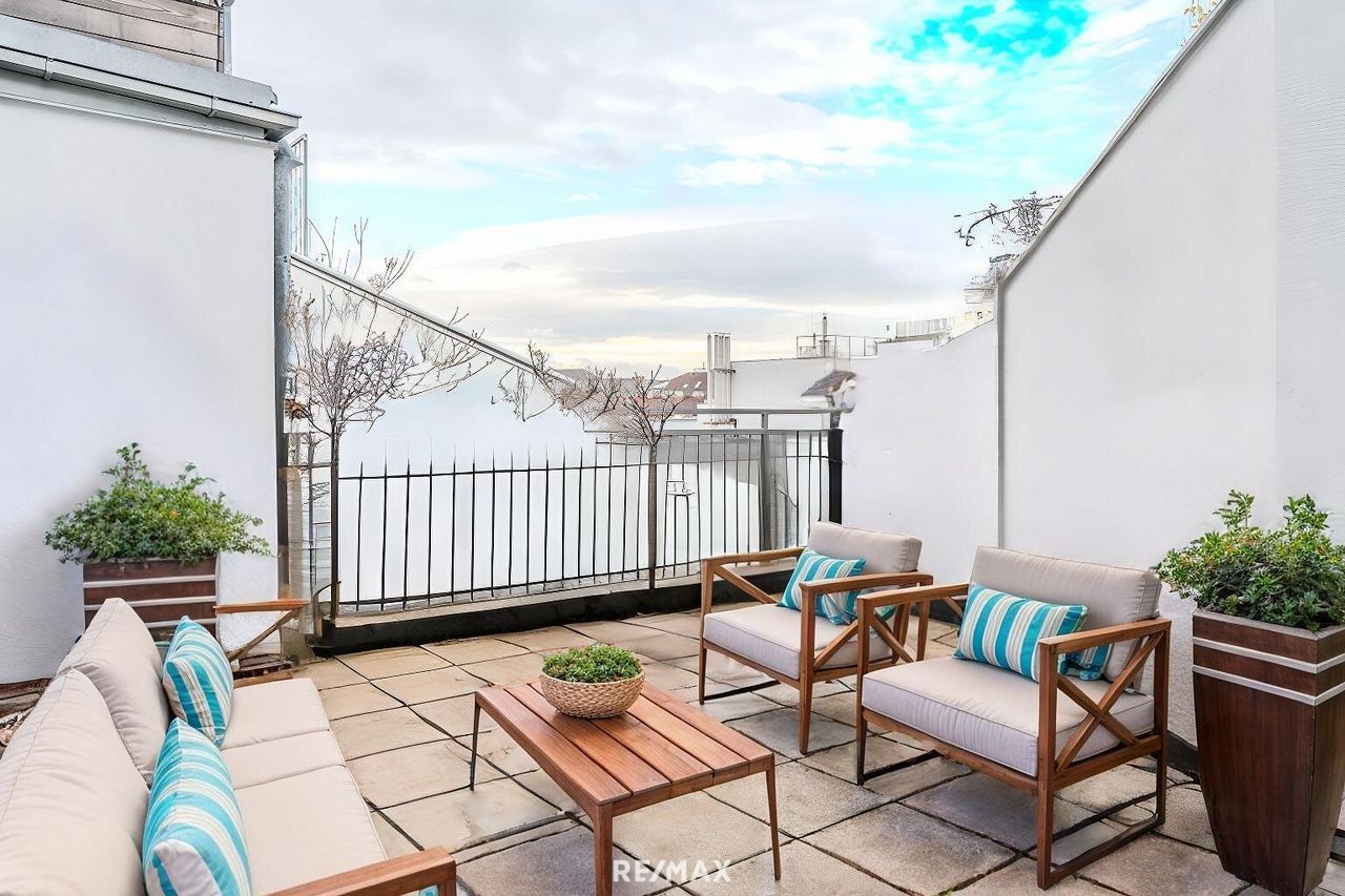Ein weiteres Highlight ist der Zugang zu einem zusätzlichen Terrassenbereich, der Ihre Outdoor-Oase erweitert und einen 360 Grad Panoramablick über Wien bietet. Ob Sonnendeck, Kräutergarten oder einfach ein Platz zum Träumen – hier sind Ihrer Kreativität keine Grenzen gesetzt.