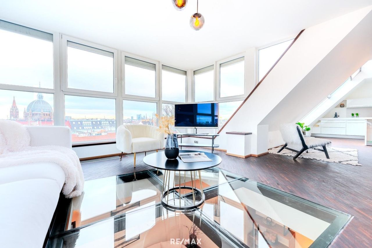 Stilvoller Rückzugsort über den Dächern der Stadt Diese einzigartige und trendige DG- Maisonette Wohnung mit ca. 188 m² Wohnfläche befindet sich im 2006 ausgebauten DG eines wunderschönen Altbaus im Neorenaissance Stil und vermittelt ein besonderes Wohngefühl. Dieses architektonisch perfekt durchdachte Objekt erstreckt sich über 2 Ebenen. Die Raumaufteilung ermöglicht nicht nur ein gemütliches Wohnen auf einzigartige Weise, sondern würde sich auch perfekt als Businessapartment anbieten. Mit ihrer beeindruckenden offenen Raumgestaltung und einer luxuriösen Ausstattung präsentiert sich diese Dachgeschosswohnung als perfekter Rückzugsort für Individualisten oder Paare mit Anspruch. Lichtdurchflutete Räume, hochwertigste Materialien und ein Design, das zeitlose Eleganz mit urbanem Chic...