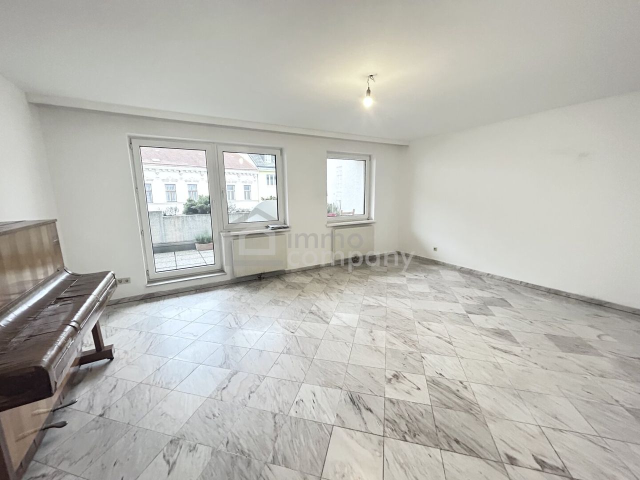Beim Betreten der Wohnung werden Sie sofort von einem Gefühl der Ruhe und Gemütlichkeit umgeben. Der helle Marmor und das warme Laminat schaffen eine einladende Atmosphäre, während die Fenster den Raum mit natürlichem Licht durchfluten. Ein absolutes Highlight sind die zwei Balkone, die Ihnen einen Blick auf die Stadt bieten. Genießen Sie hier Ihren Morgenkaffee oder entspannen Sie sich nach einem langen Tag bei einem Glas Wein.