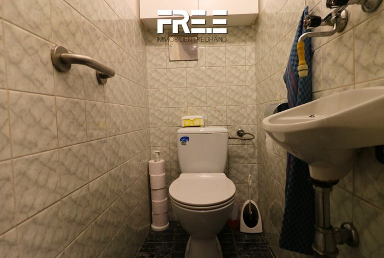 Das Badezimmer ist mit einer Badewanne ausgestattet und könnte wieder modernisiert werden. Die separate Toilette sorgt für zusätzliche Privatsphäre. Eine praktische, vor wenigen Jahren...