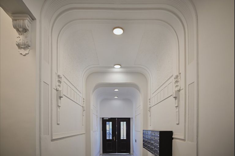 Neue Holzfenster in klassischer Altbau-Optik, 3-fach verglast. Eingangstüre 90x220 cm Sicherheitsklasse RC3 mit Sicherheitsbeschlägen.