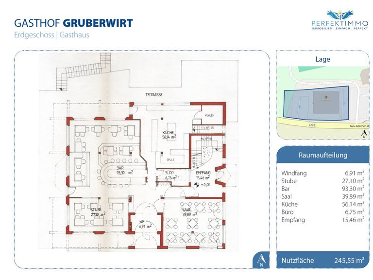 Zum Verkauf steht der traditionsreiche Gasthof Gruberwirt in Götzens, der ideal für Investoren ist, die eine vielversprechende Rendite in der Vermietung und Beherbergung erzielen möchten. Das Objekt besteht aus einem Gasthaus, das sich über eine Nutzfläche von ca. 245 m² erstreckt und aktuell verpachtet ist, und insgesamt neun attraktiven Apartments, die besonders bei Feriengästen beliebt sind. Die bestehenden Mieteinnahmen belaufen sich auf netto € 3.500 monatlich für das Restaurant und netto € 5.600 für die Apartments. Diese Zahlen verdeutlichen das vorhandene Potenzial und den stabilen Cashflow, den das Objekt seinen künftigen Eigentümern bietet.