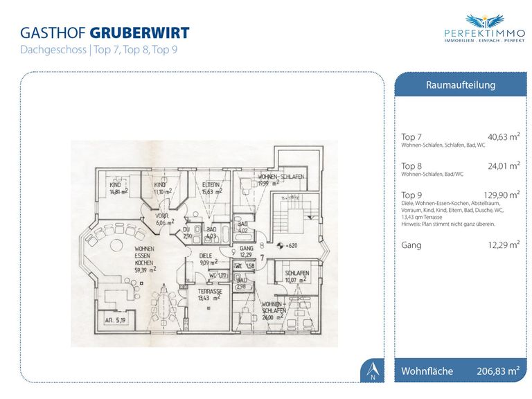 davon Wohnfläche ca. 426,65 m² (OG + DG)