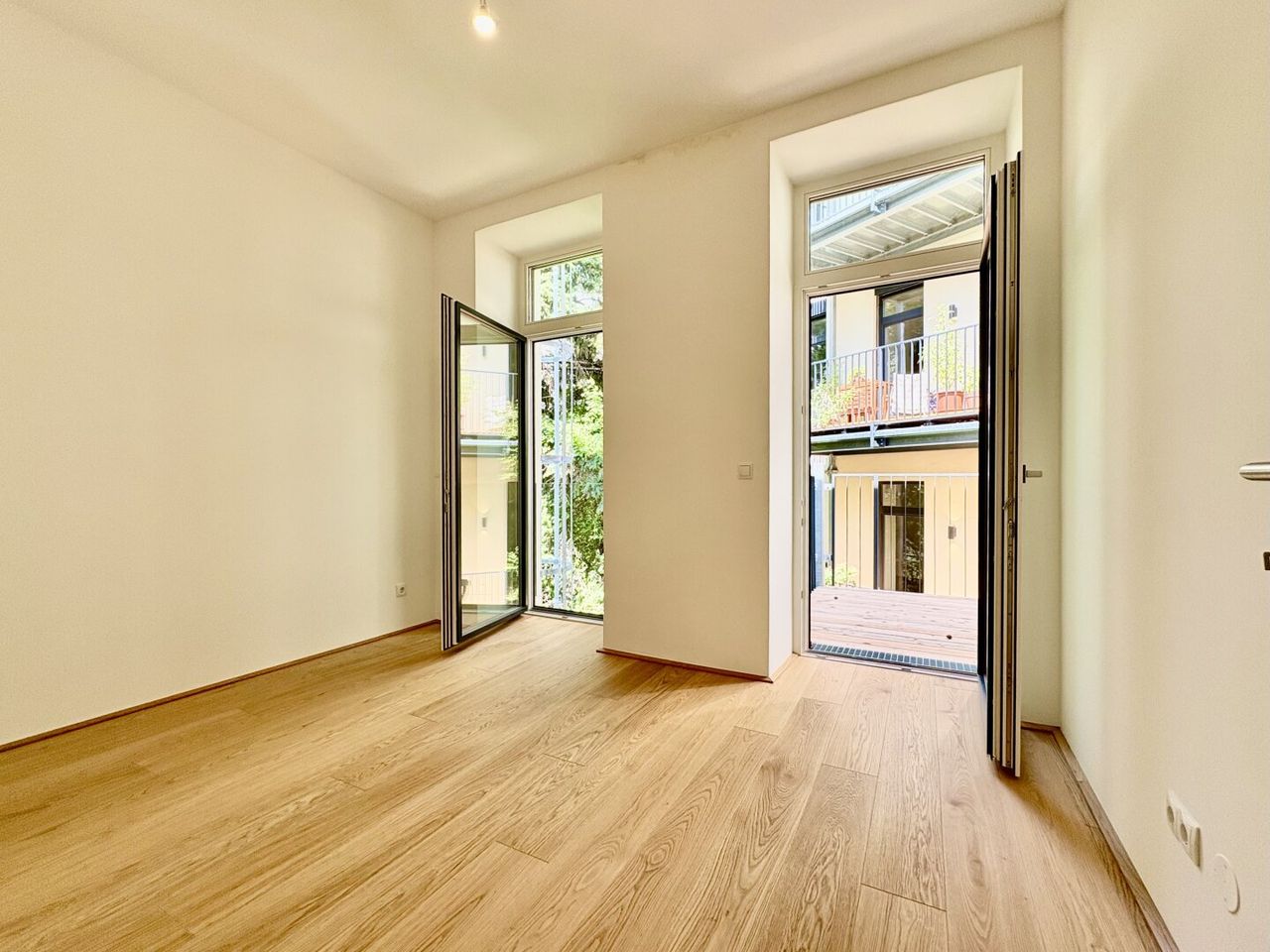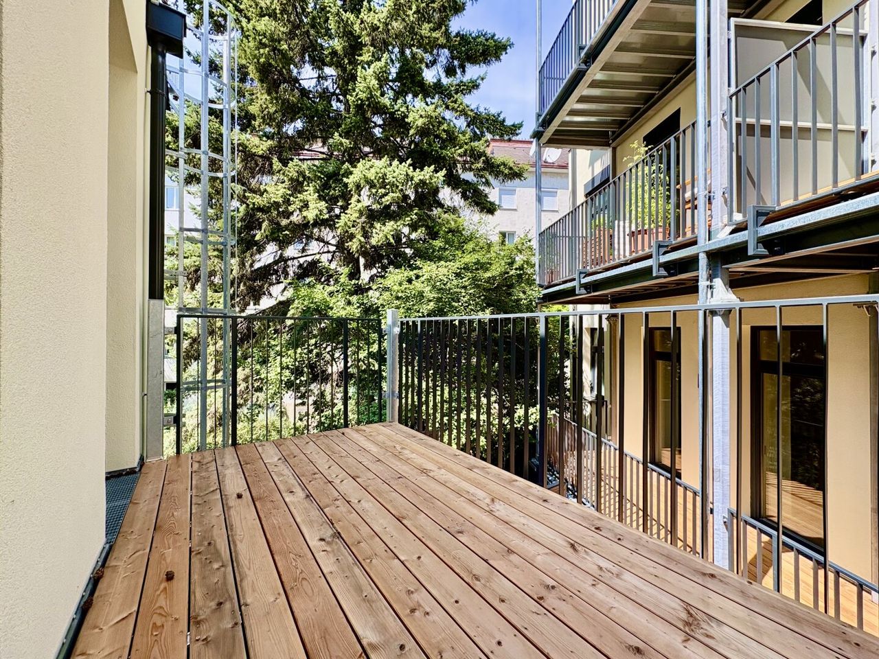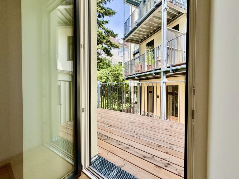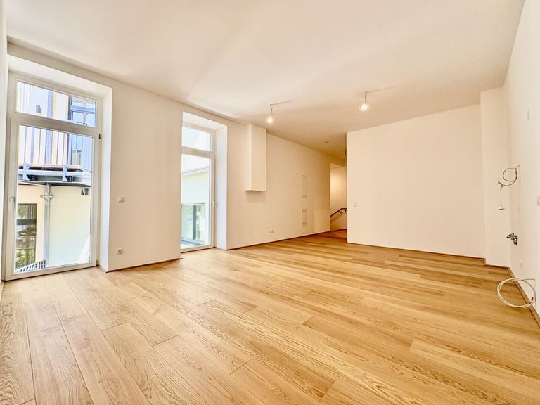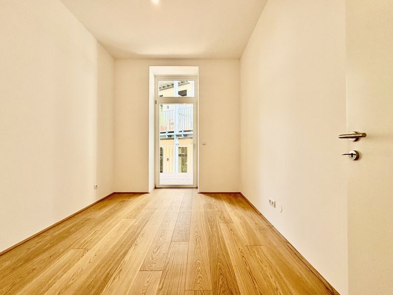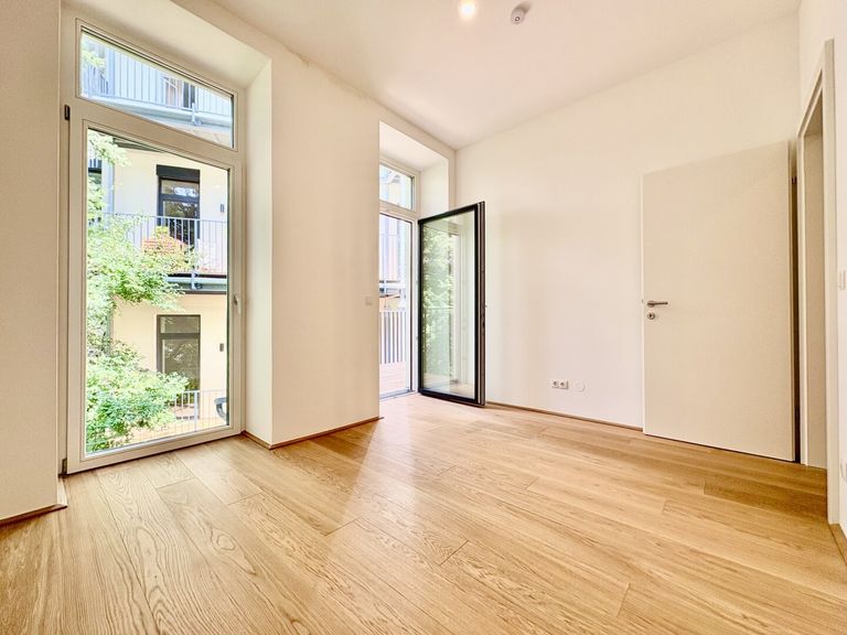 Die Wohnung Top 1A befindet sich im 1.Obergeschoß des Hauses im ruhigen, hofseitigen Trakt des Gebäudes. Sie zeichnet sich durch eine Raumhöhe von 3 Metern und einer effizienten Raumnutzung aus. Ergänzt wird diese Wohnung durch einen großen, südseitig ausgerichteten Balkon. DAs besondere der Wohnung ist der direkte eigene Zugang aus dem Eingangsbereich.