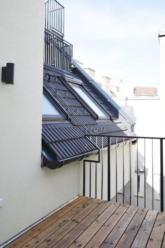 Die Wohnung Top 38 befindet sich im ersten, neu errichtetem Dachgeschoß des Hauses, barrierefrei vom Aufzug erreichbar. Diese Wohnung zeichnet sich durch luxuriöse Ausstattung, effiziente Raumaufteilung und einem südseitig gelagerten, in den Innenhof ausgerichteten Balkon aus. Der vordere Teil der Wohnung liegt an der vorgelagerten Fußgängerzone Meiselstraße.