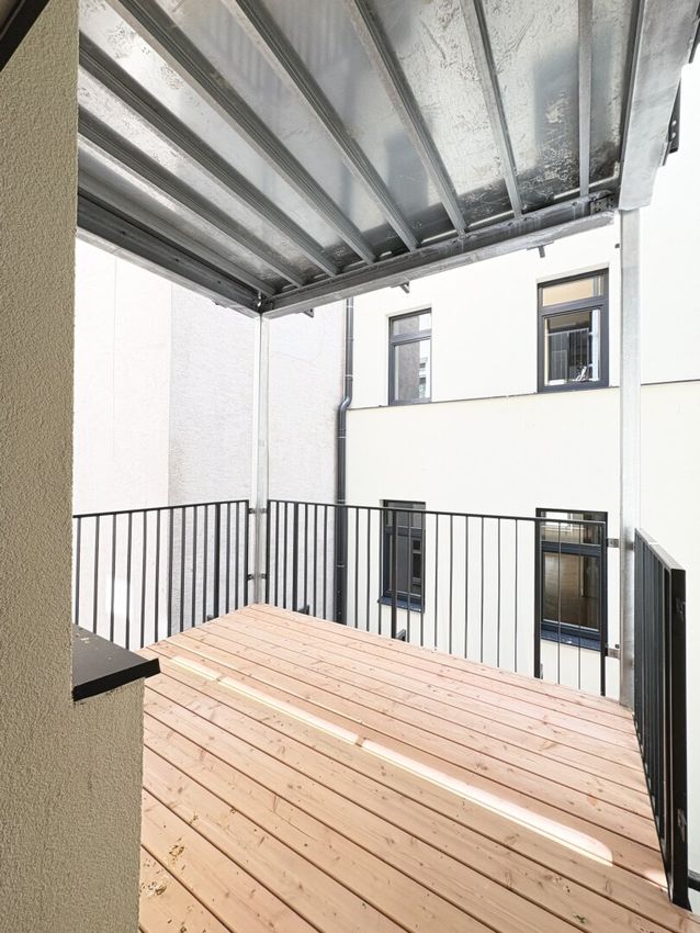 Die Wohnung Top 19 befindet sich im 1.Obergeschoß des Hauses, barrierefrei vom Aufzug erreichbar. Sie zeichnet sich durch eine Raumhöhe von knapp 3 Metern, einer effizienten Raumaufteilung und Raumnutzung aus. Von der Wohnung aus genießt man den Blick über die vorgelagerte Fußgängerzone Meiselstraße, der hintere Teil der Wohnung ist in einen ruhigen Innenhof ausgerichtet.