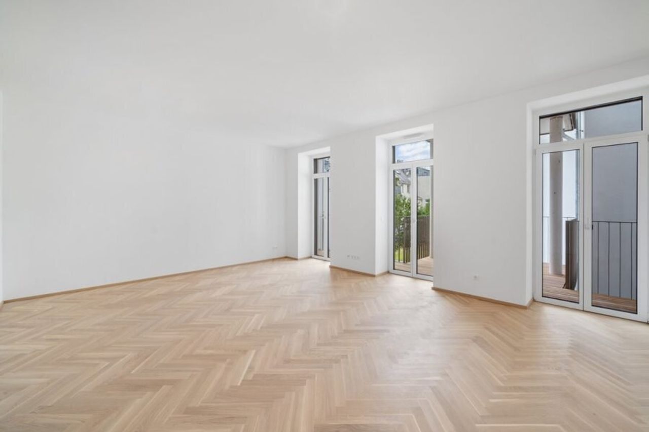 In einem generalsanierten Spätsecessionshaus (BJ 1913–1914) entstehen 22 hochwertige Wohnungen mit Größen von 37 bis 150 m², teilweise mit Balkon, Terrasse oder Garten.