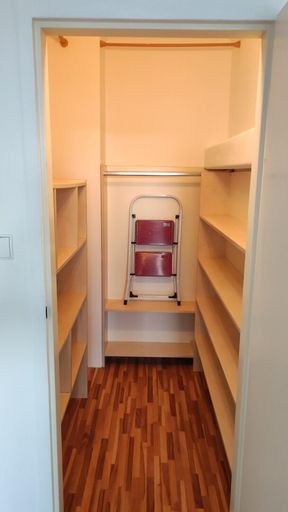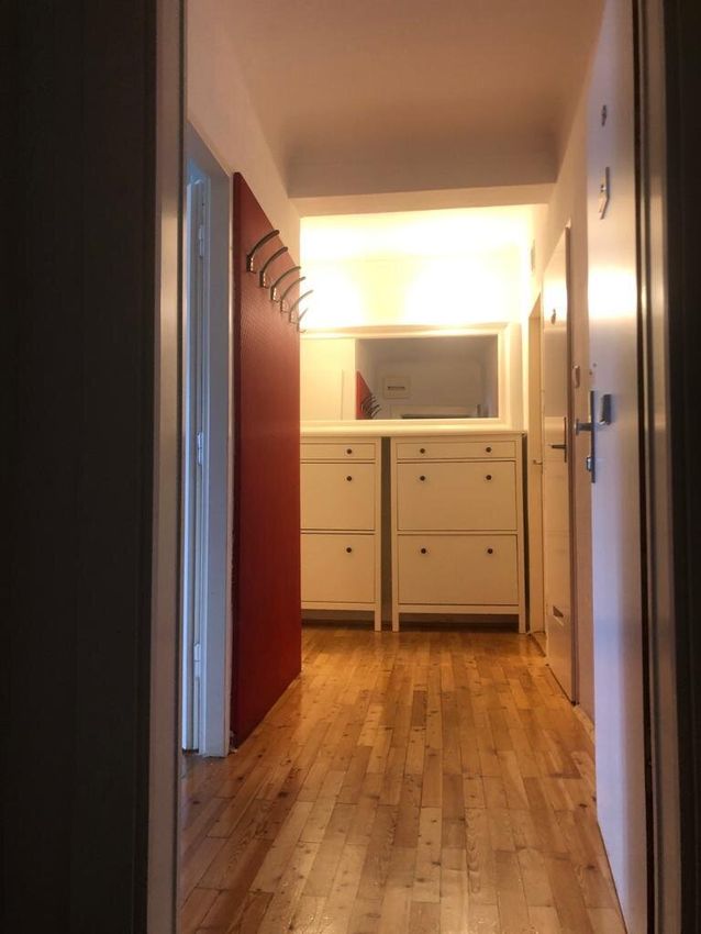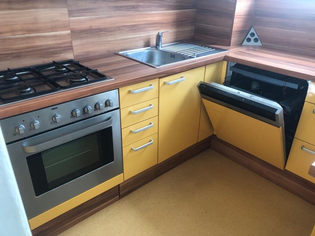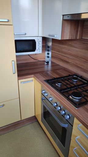 Die Zimmer sind getrennt begehbar: ein Wohn-/Esszimmer, ein Schlafzimmer mit Abstellraum als begehbarer Schrank, eine separate Küche, Bad mit Badewanne, separates WC. Der Küchenblock verfügt über elektrische Einbaugeräte (E-Herd, Geschirrspüler, Kühlschrank, Gefrierschrank. In der Küche (Küchenbereich im Wohnzimmer) befindet sich ein Vinylboden. Die Fenster sind dreifach verglast und schalldicht. Die Böden sind mit Parkett und Laminat verlegt. In den Sanitärräumen verfließt. Alle notwendigen Anschlüsse, z.B. Telefon, SAT, Kabel (Magenta), sind in den Wohnräumen vorhanden. Es wird mit Gas mittels Gaskonvektoren beheizt. Durchlauferhitzer (Gas)...