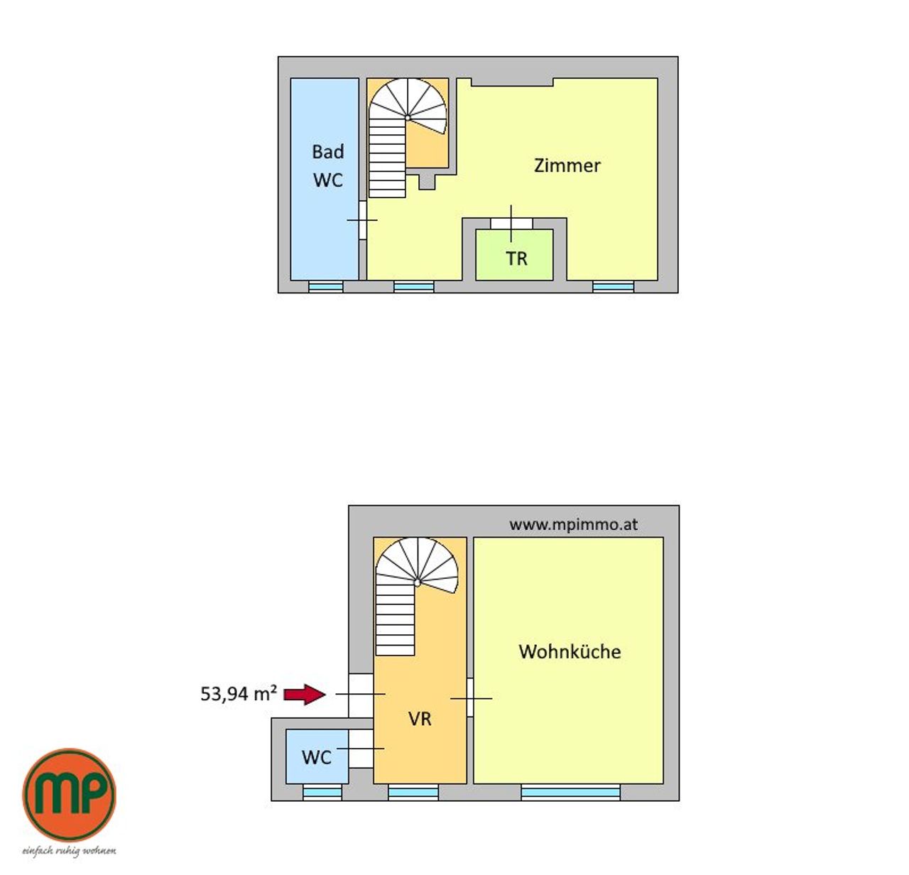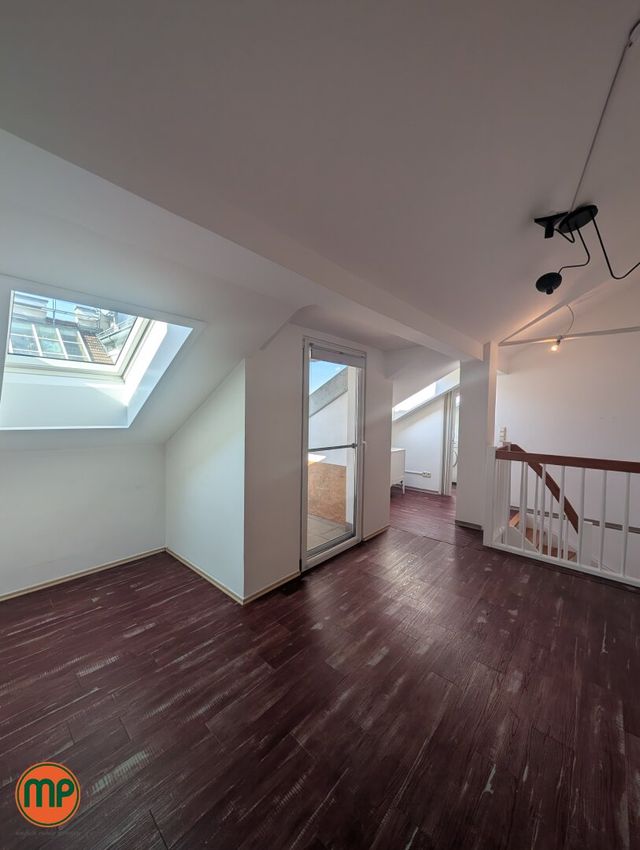 Durch einen charmanten Innenhof gelangen Sie zur Stiege 2. Ihr neues Zuhause befindet sich im 3. Stock ohne Aufzug und ist sehr gut auf die zwei Stockwerke aufgeteilt. Vom großzügigen Vorraum aus erreichen Sie Toilette, Treppenaufgang und Wohnküche. Letztere ist hochwertig ausgestattet und verfügt über einen geräumigen SMEG-Kühlschrank. Über elegante Holztreppen gelangt man ins obere Stockwerk. Neben dem Schlafzimmer wartet hier Ihre private Dachterrasse mit Blick bis zum Kahlenberg auf Sie. Das Badzimmer befindet sich direkt neben dem Treppenaufgang und besticht mit einer großen Badewanne und viel Tageslicht. Überzeugen Sie sich persönlich vom einzigartigen Charakter dieser wunderschönen Maissonette-Wohnung.
