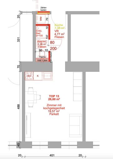 Die hier angebotene Wohnung Top 13, befindet sich im zweiten Stockwerk eines Altbaus.